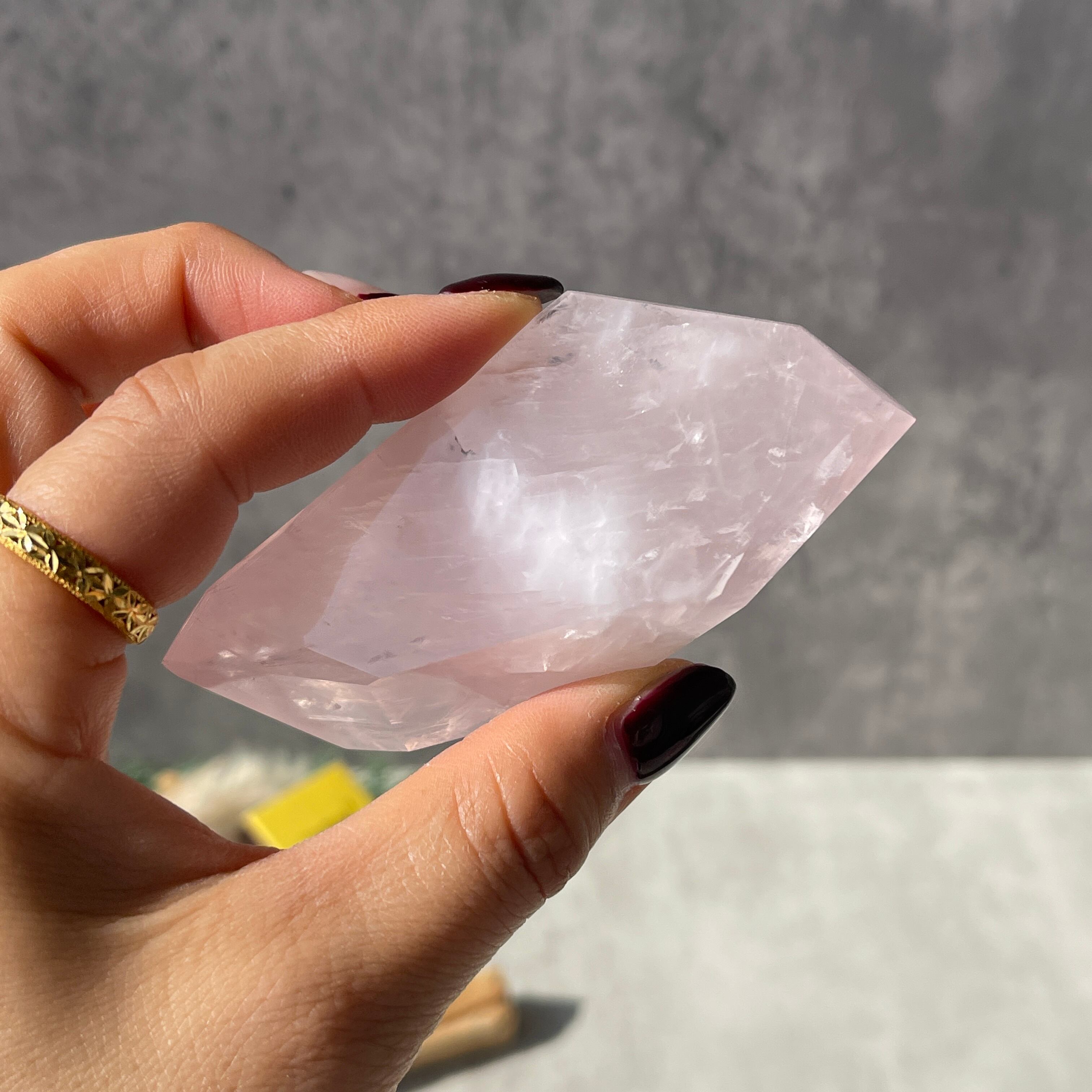 バイーア州のローズクォーツは、やわらかく淡いピンク色が特徴で、透明感よりも「ふんわりとした優しさ」を感じさせる表情が魅力。