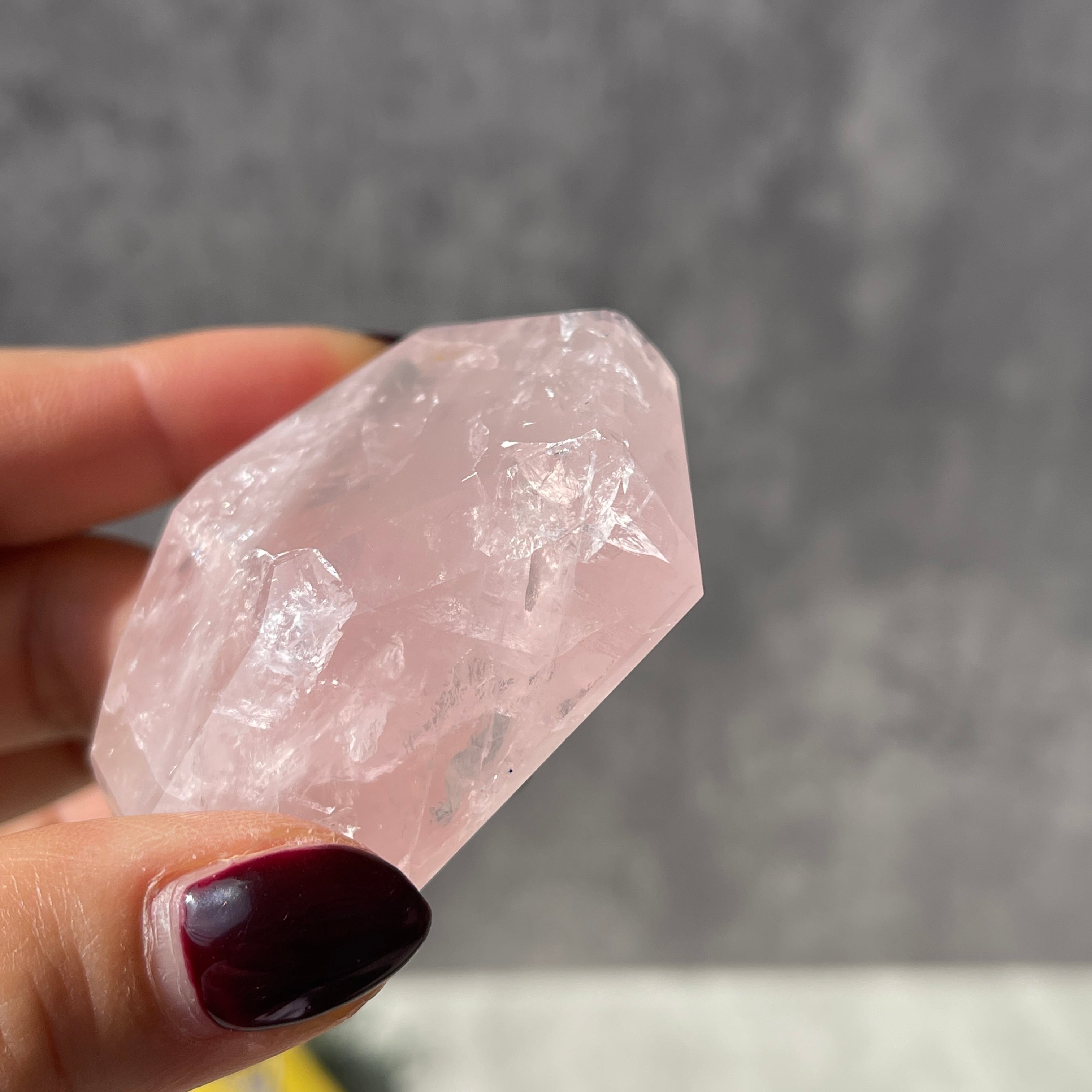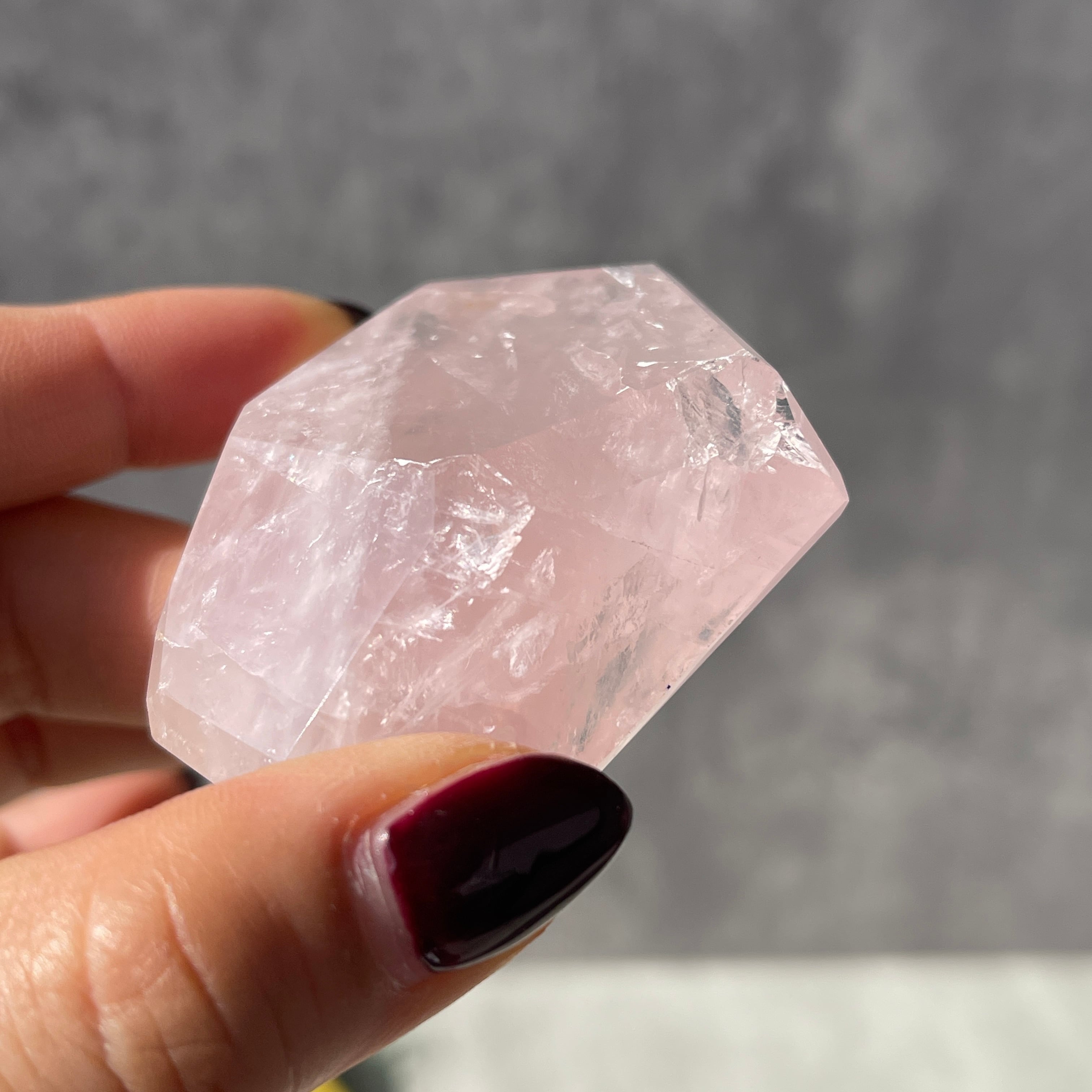 ブラジル・バイーア州産のローズクォーツを、結晶のボリューム感を残したままポリッシュ仕上げにした一点ものです。
