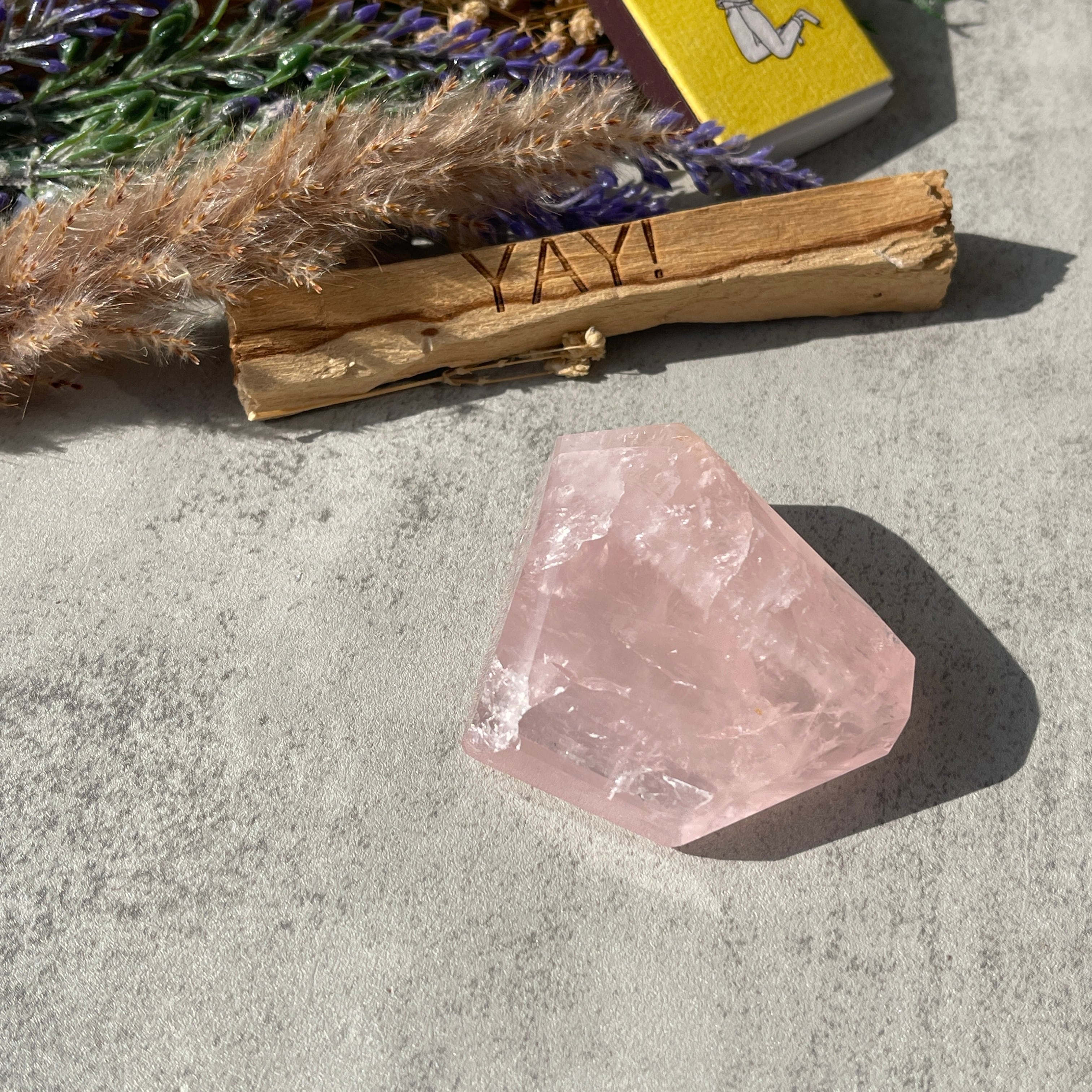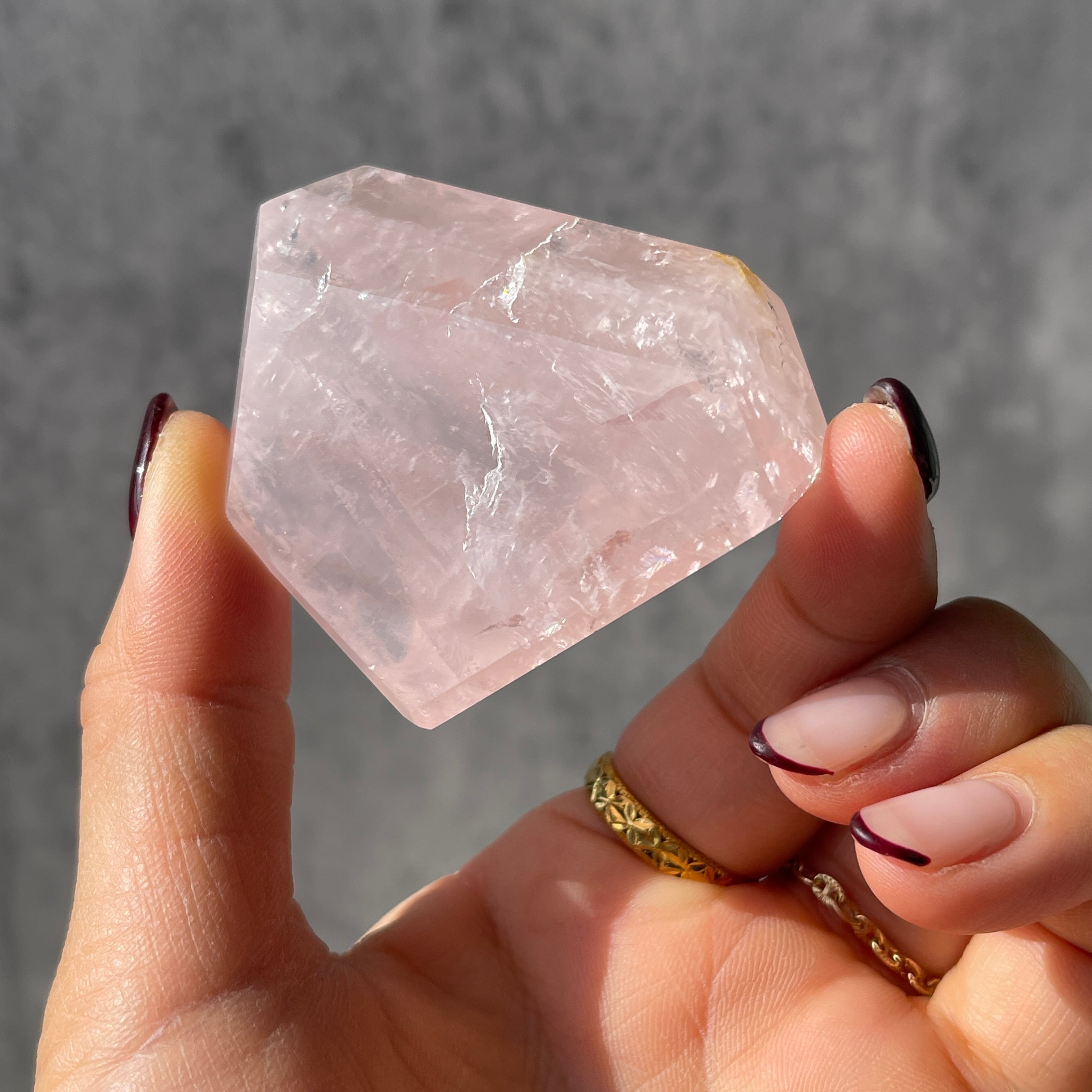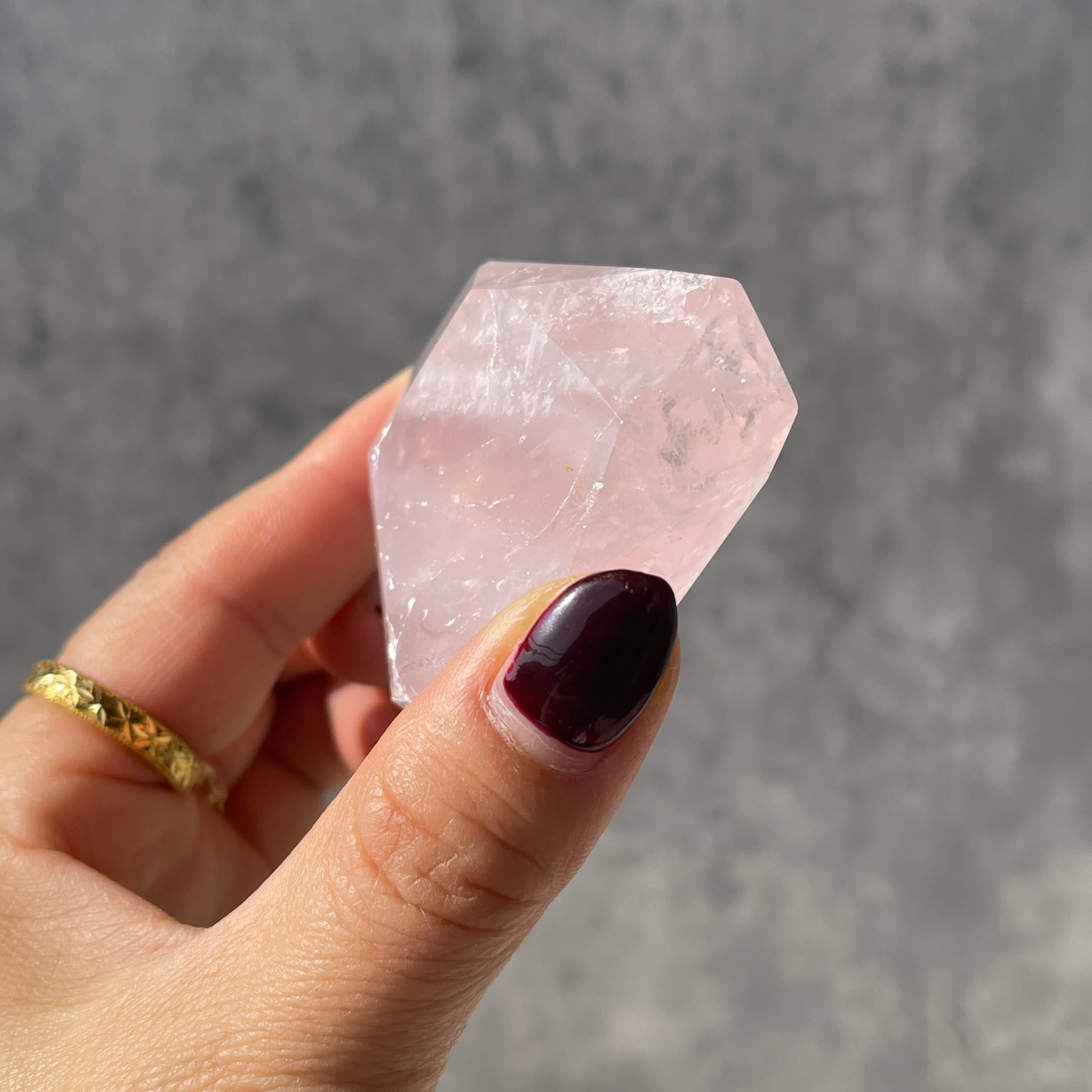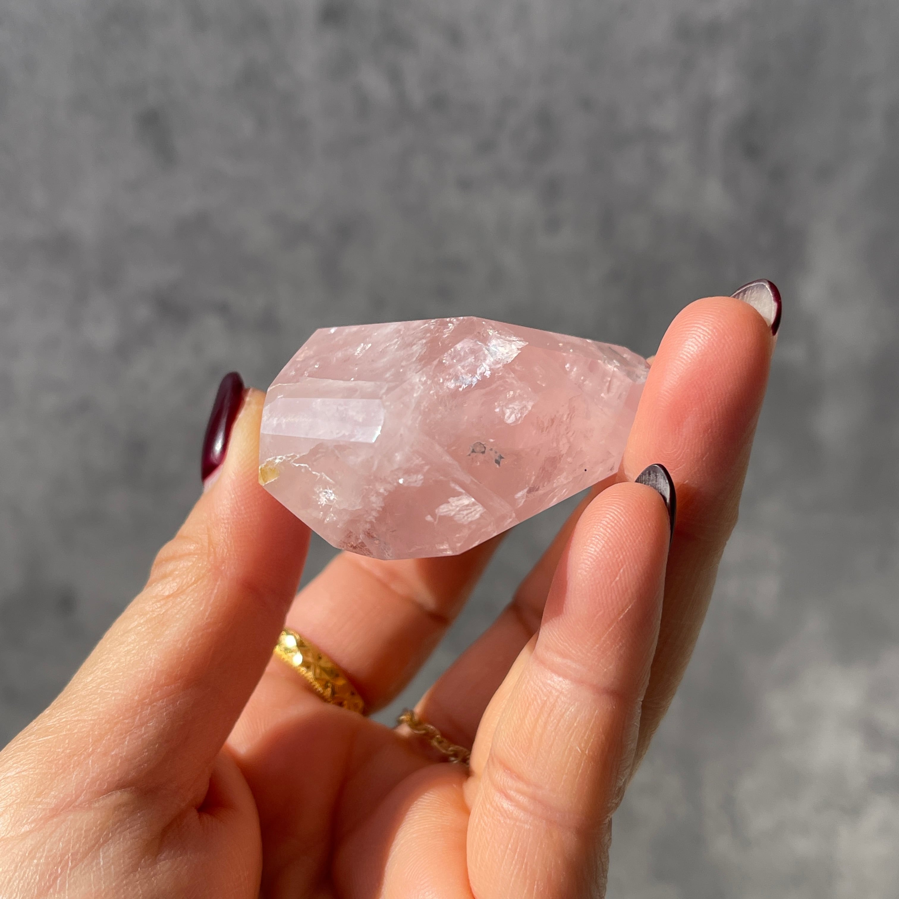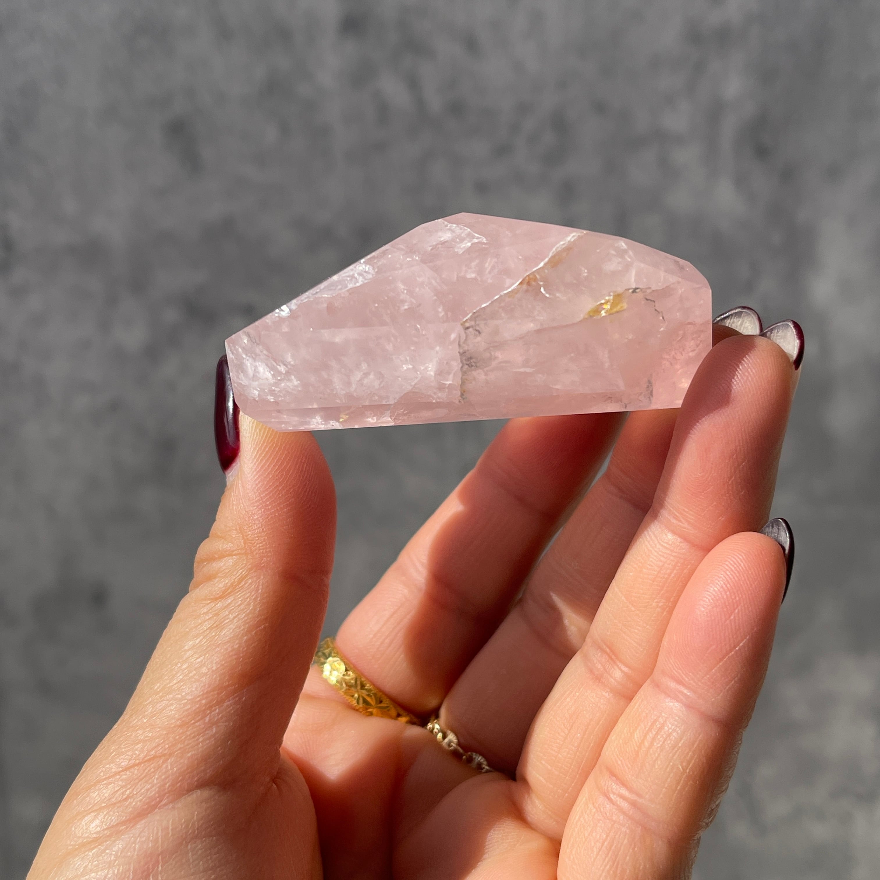 透明感を前に出すタイプではなく、ローズクォーツ本来の「石のかたまり感」「結晶の存在感」 を楽しめる一石。
