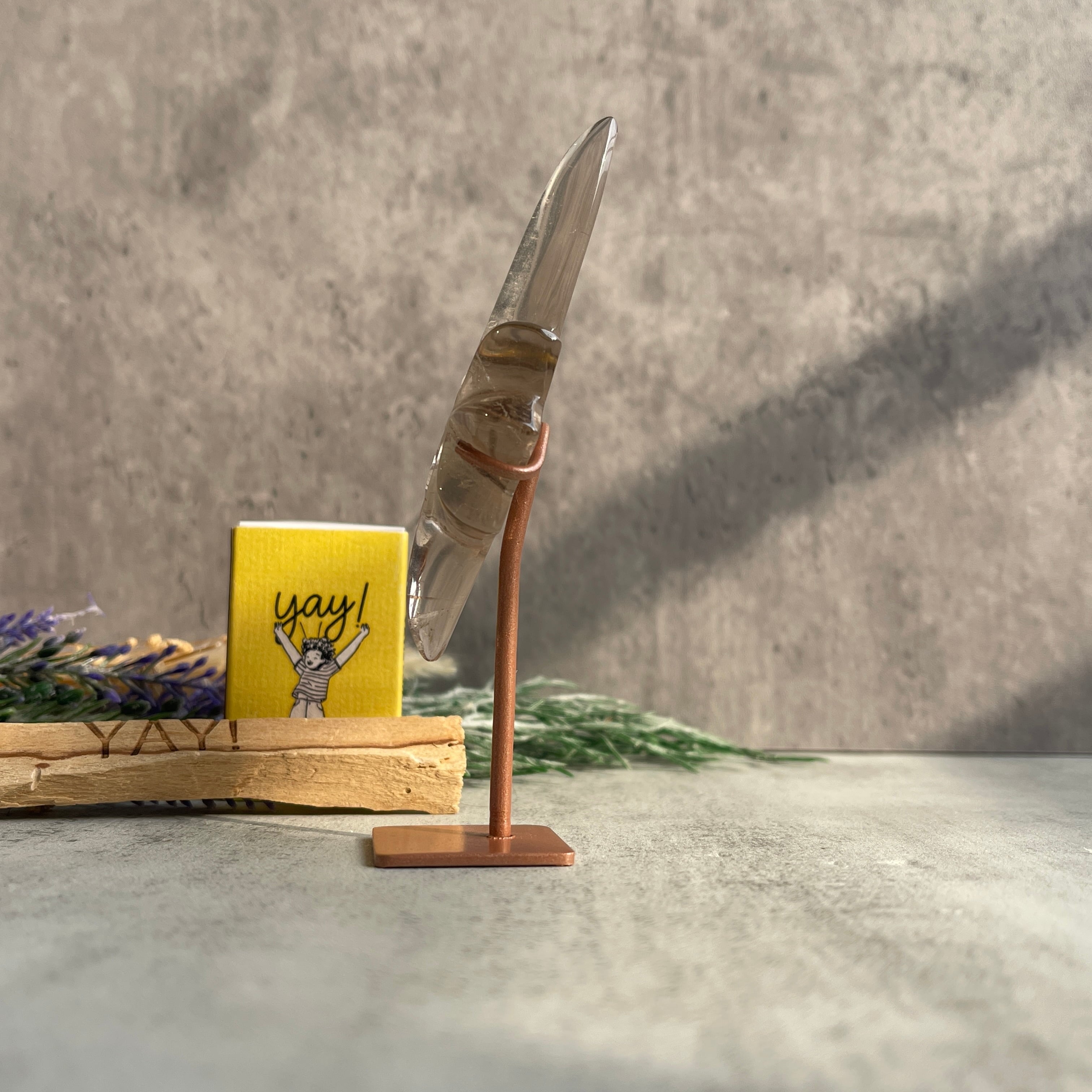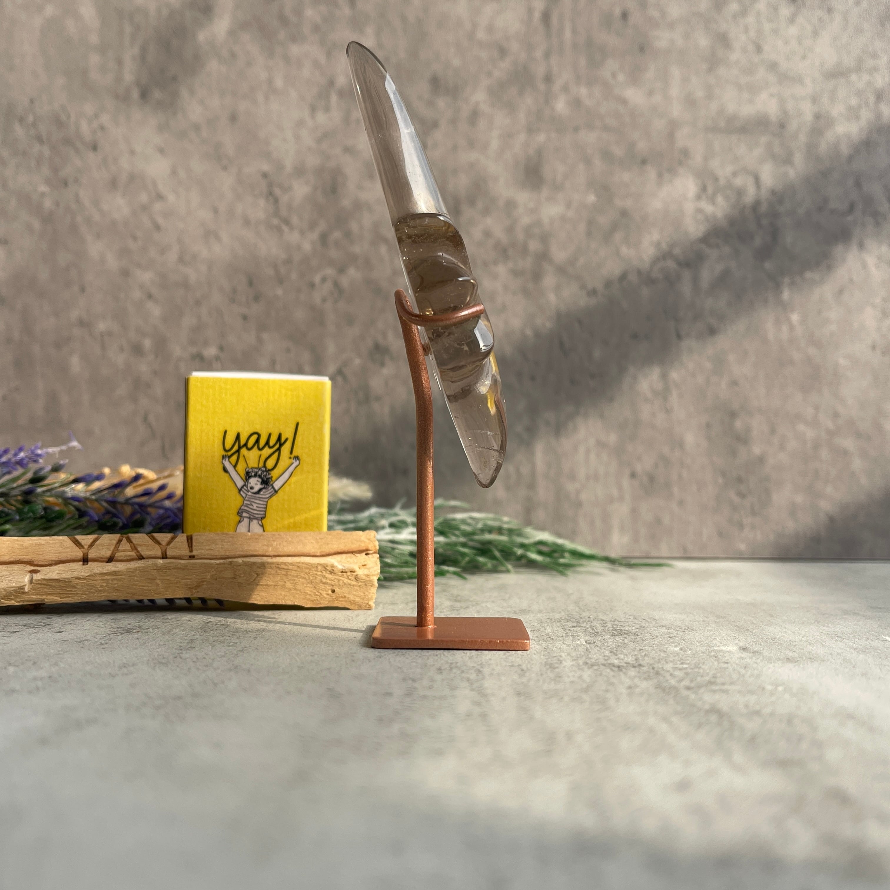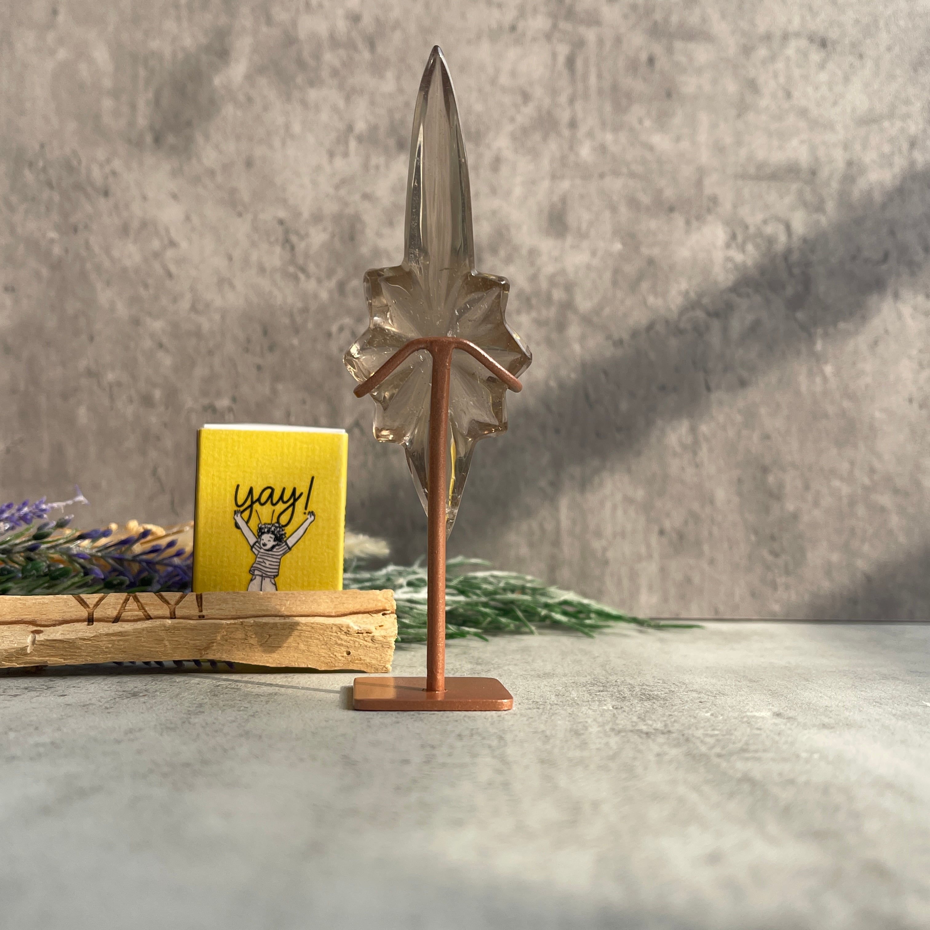 ブラジル・ミナスジェライス州セラ・デ・カブラル(Serra de Cabral)産のスモーキークォーツを用いた、「流れ星」を思わせるフォルムの一点ものです。