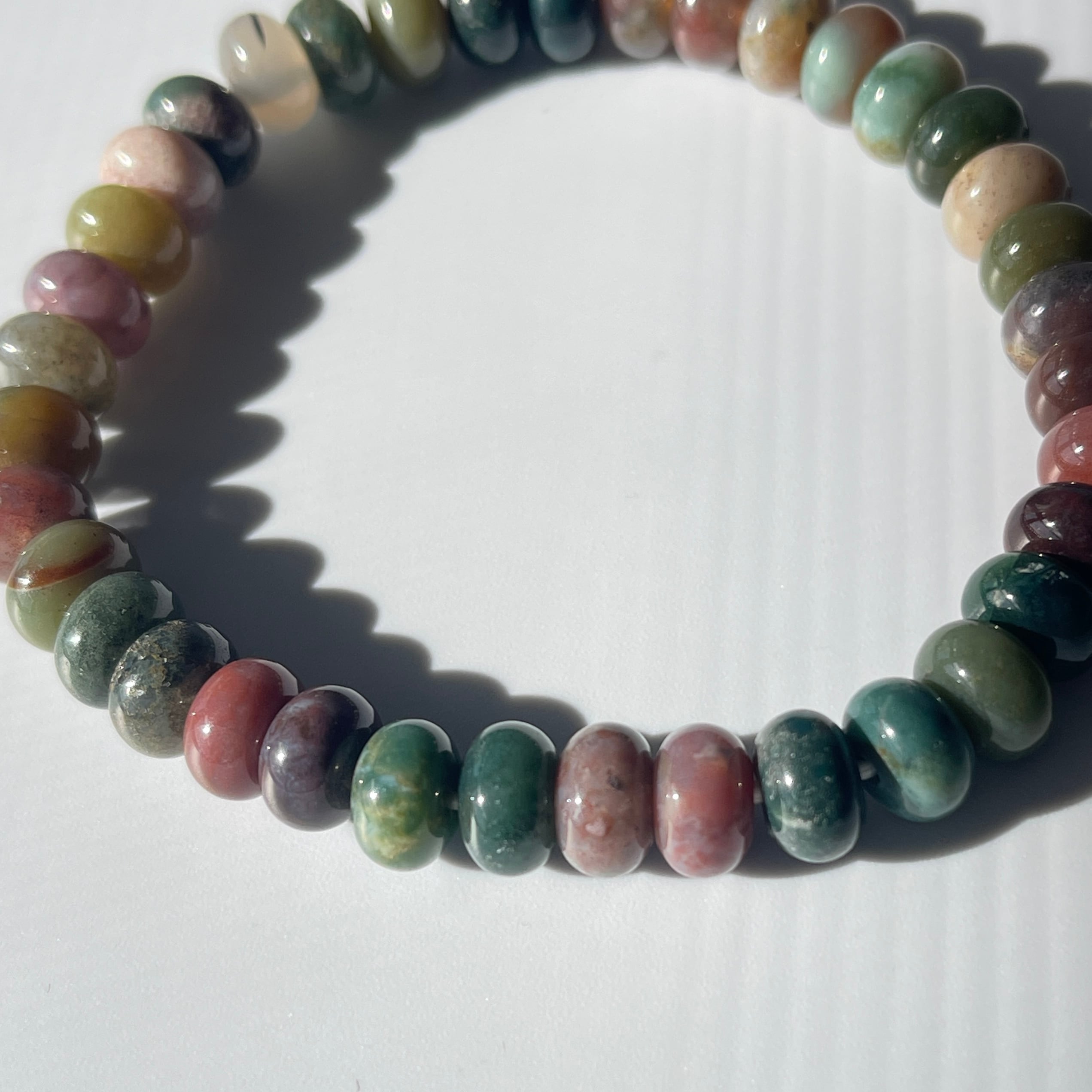 インド産のインディアンアゲートを使用した、自然の色彩が美しく連なるブレスレットです。