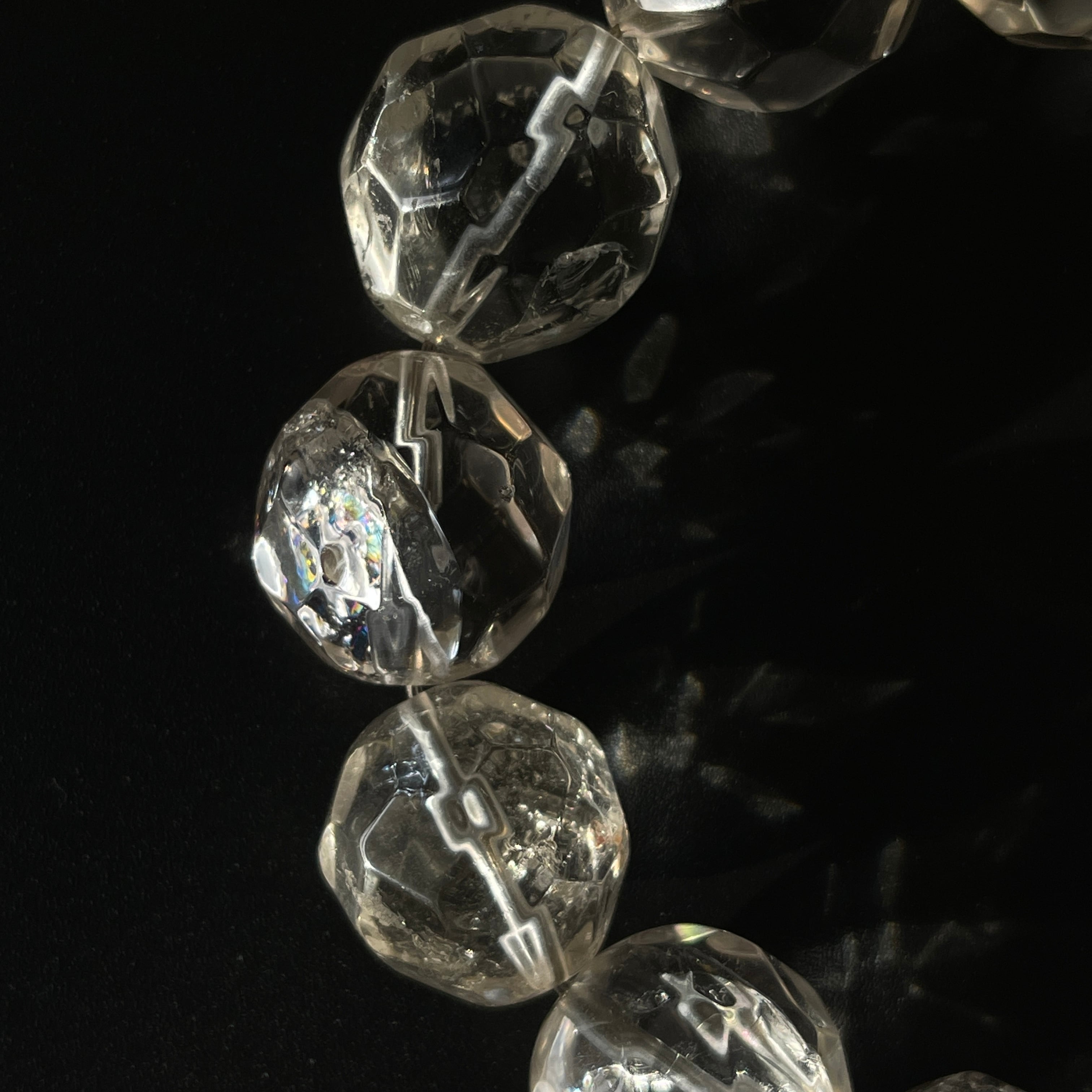 こちらの虹は、人工的なクラック(加工による内部亀裂)によって生じた可能性が高いものです。