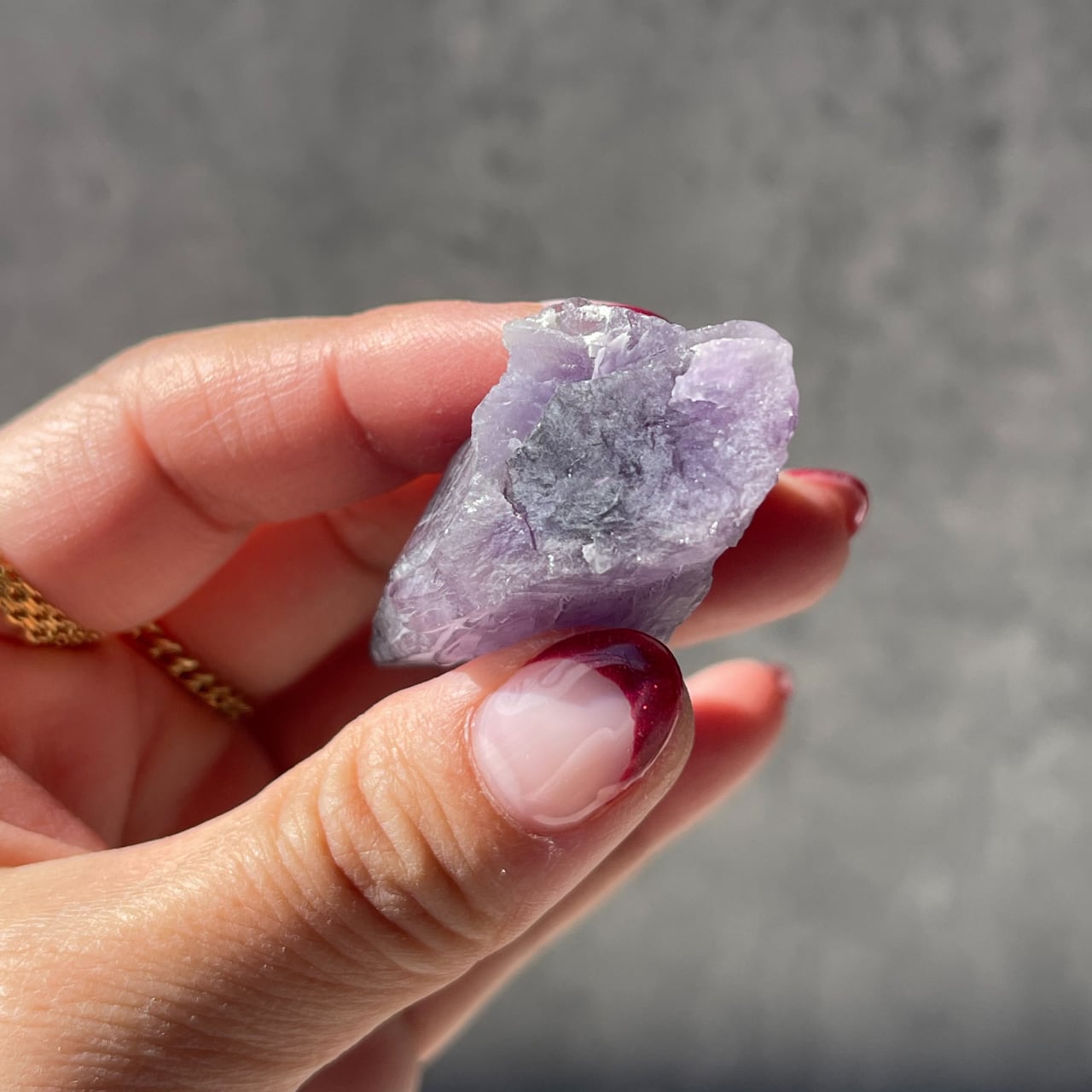 チュチュクリフ産のアメジストは、よく知られているアメジストと同じ石ですが、特別な結晶で発色が良く、インパクトのある美しい紫色が魅力の子です。
