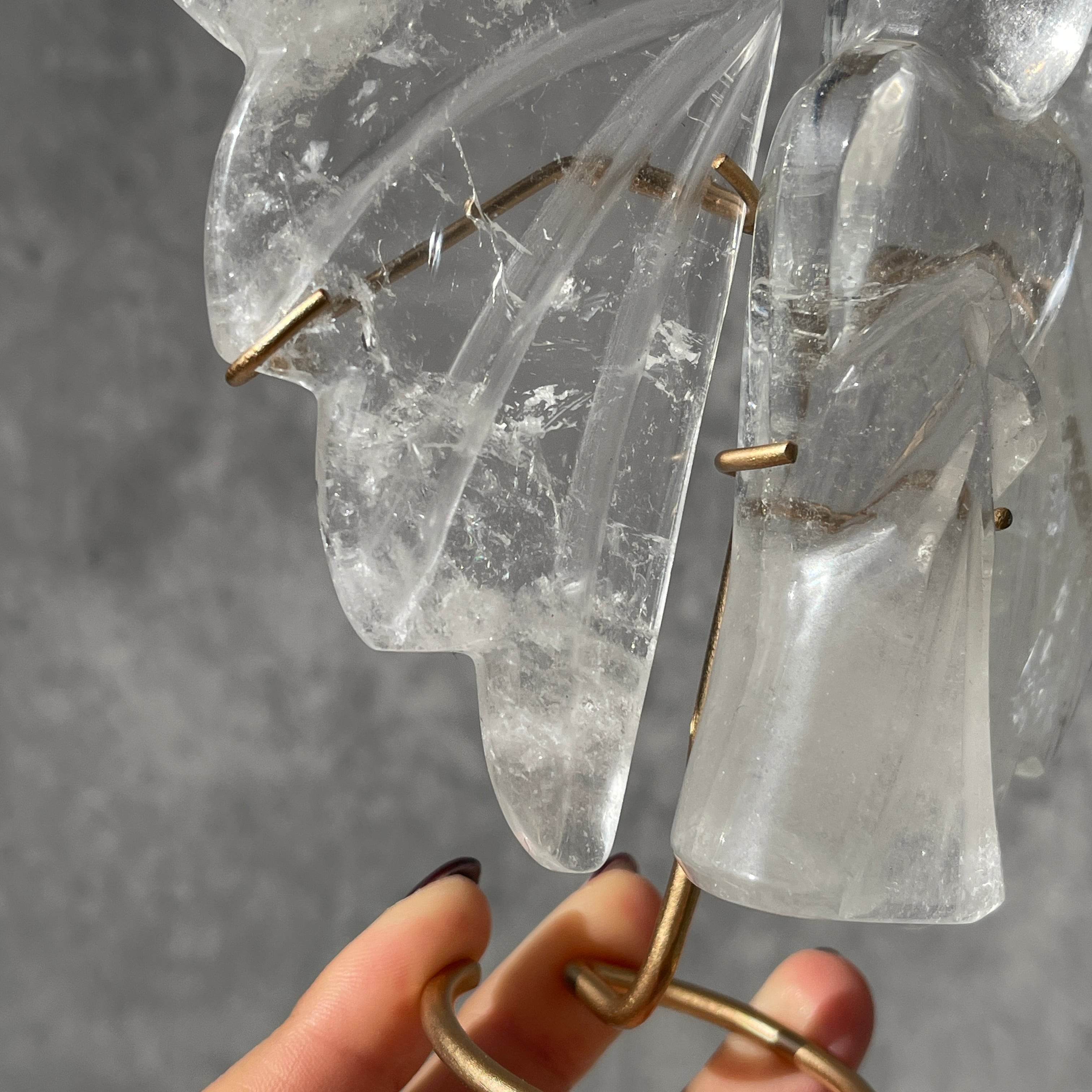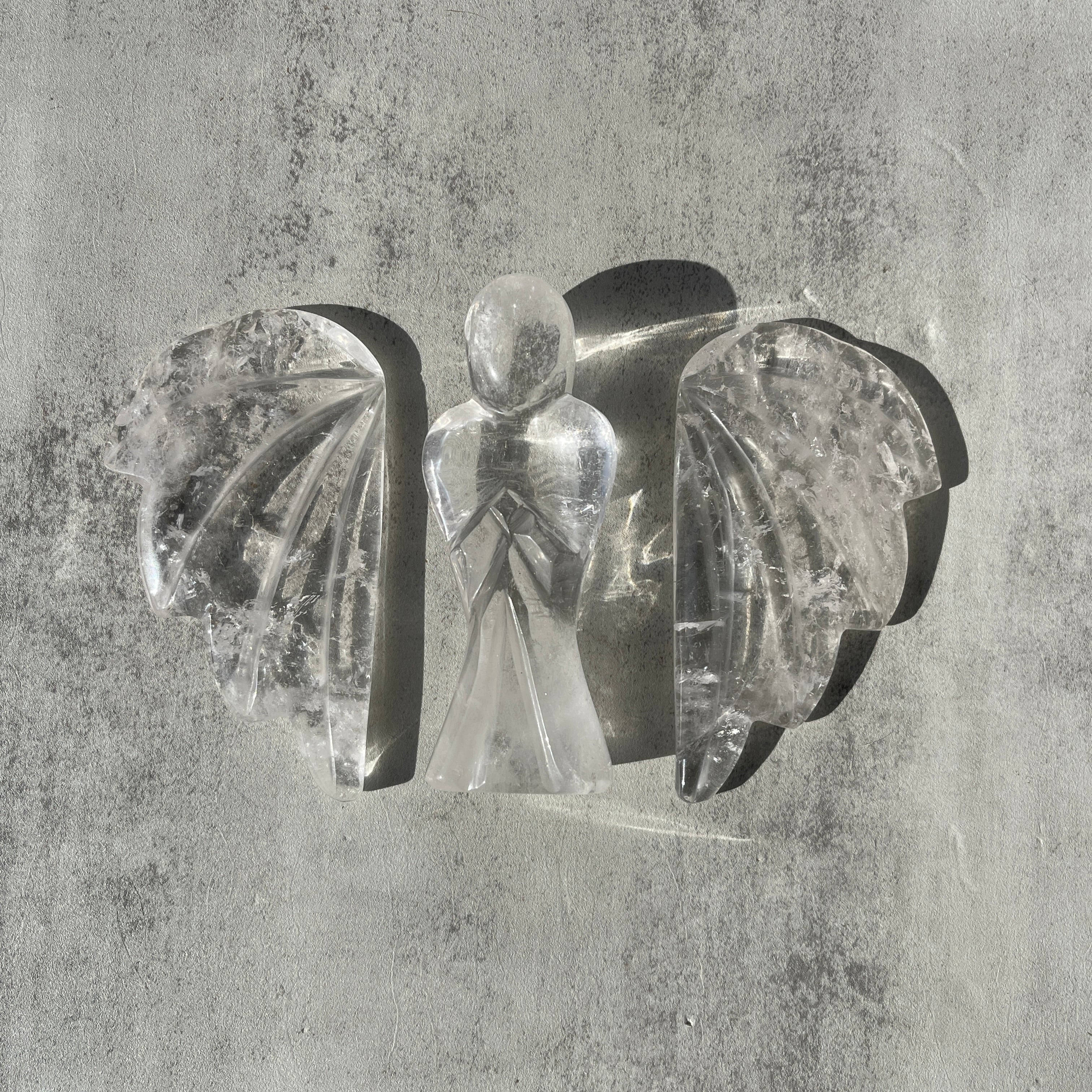 ブラジル・ゴイーア州クリスタリーナ産のクリアクォーツを使用した、エンジェル彫刻です。