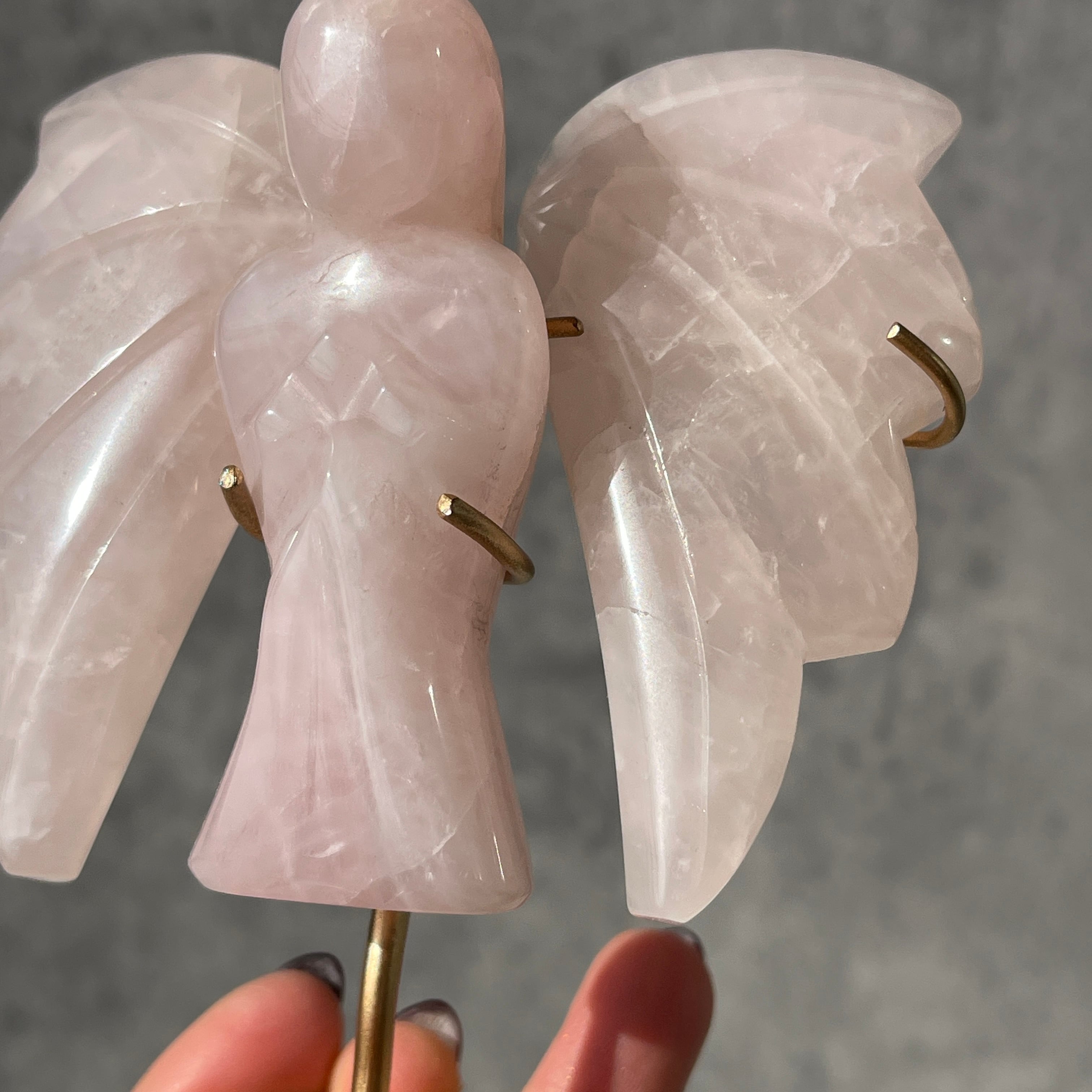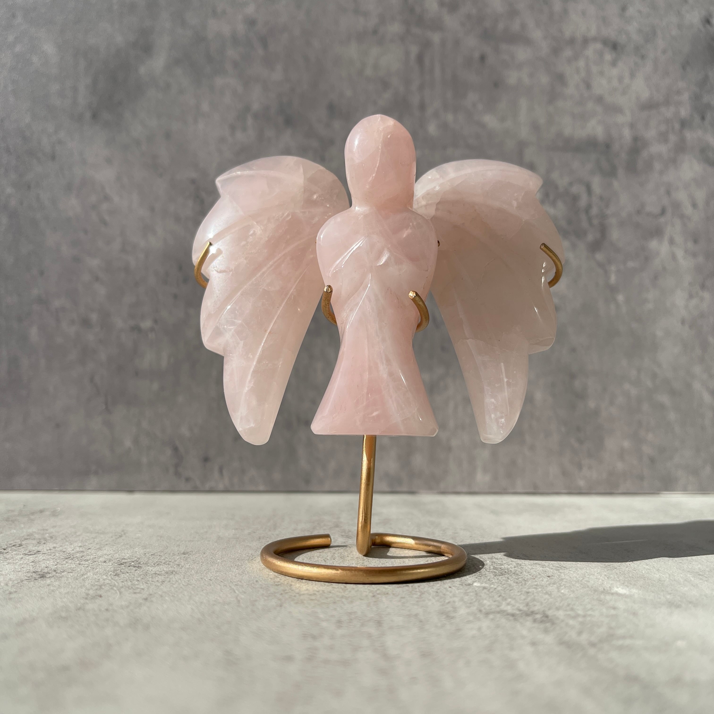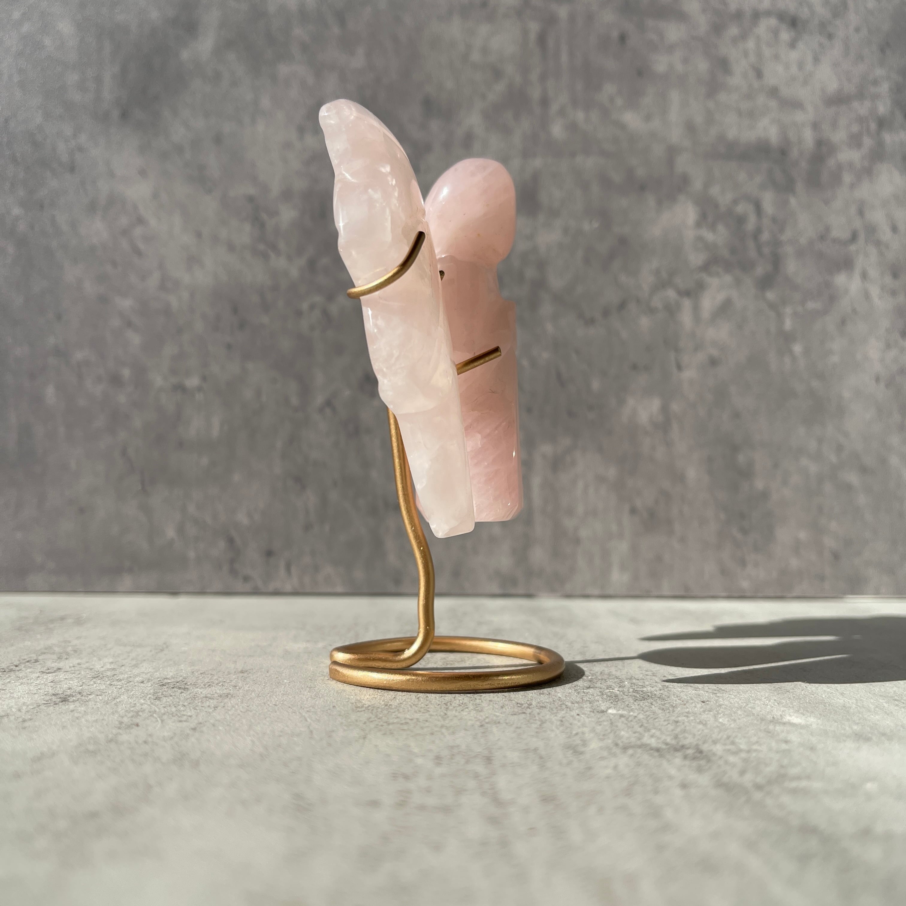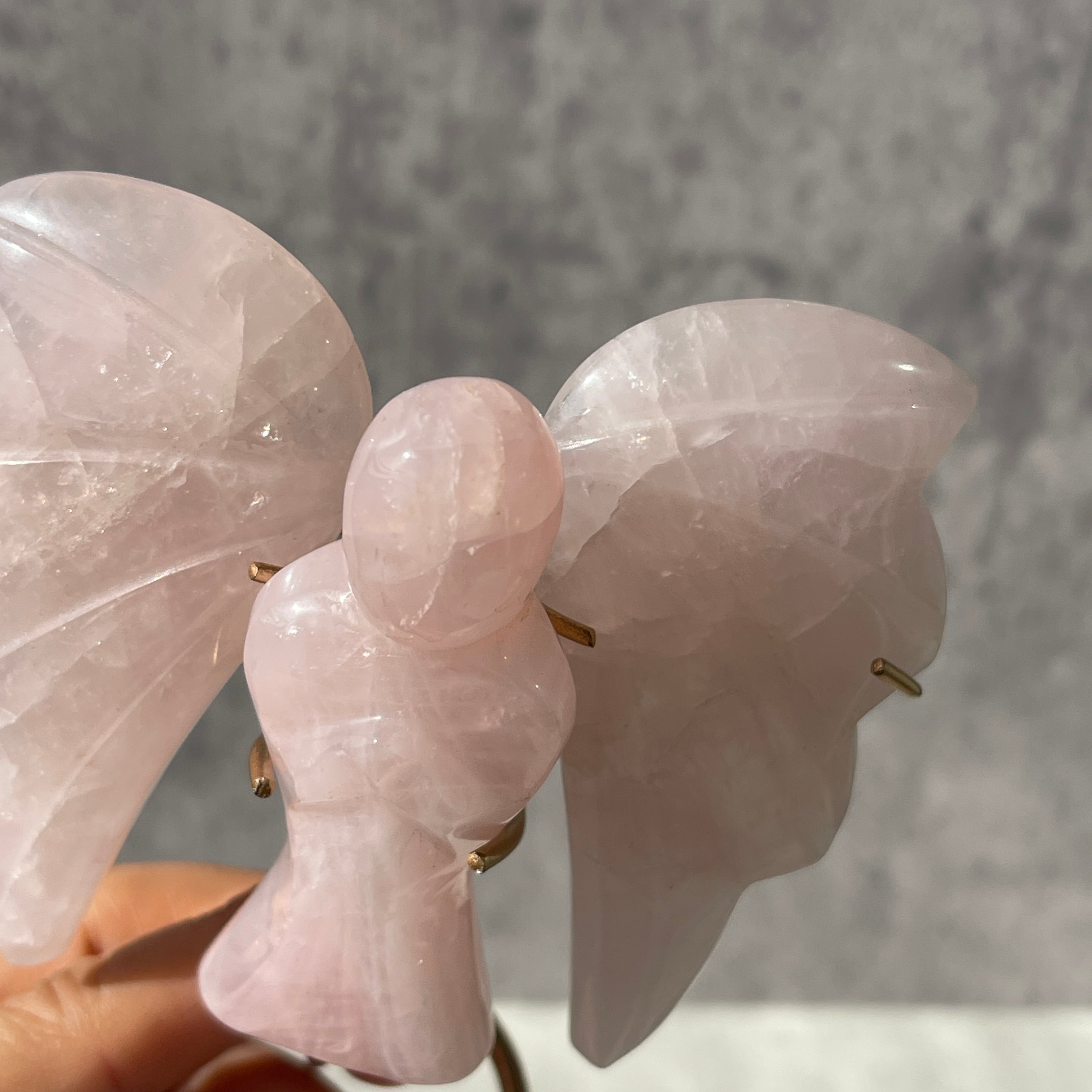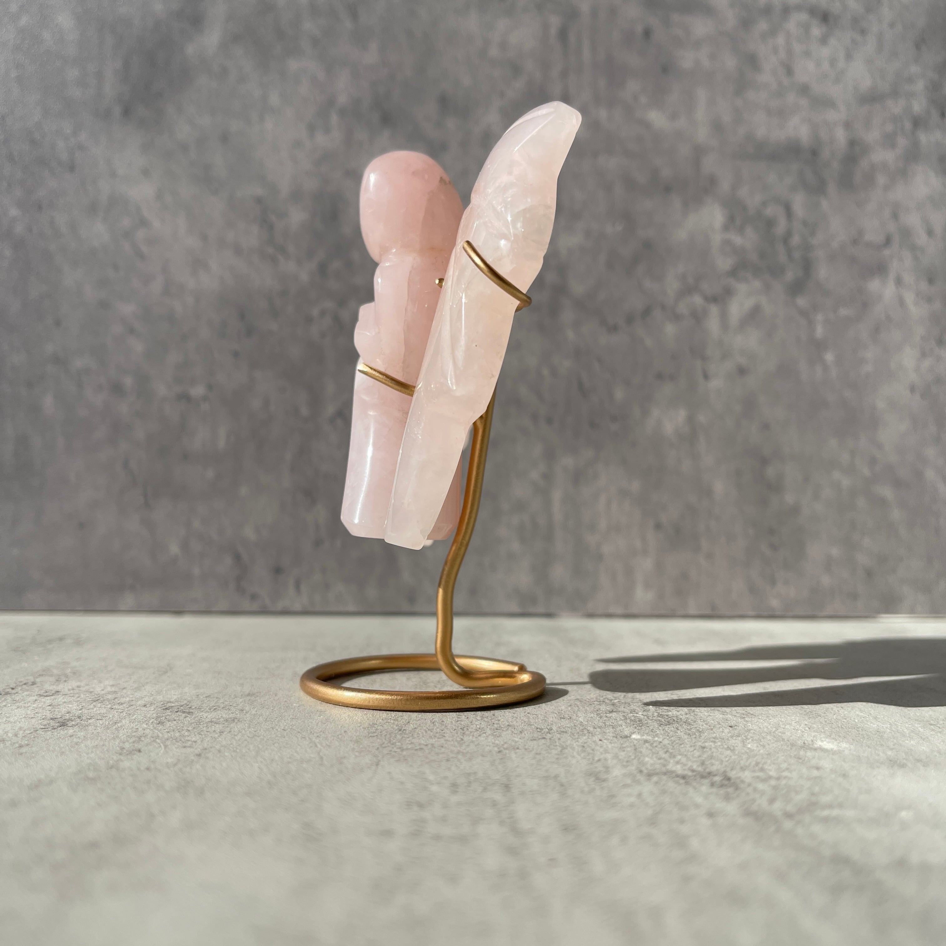 ブラジル・バイーア州産のローズクォーツを使用した、エンジェル彫刻のオブジェです。