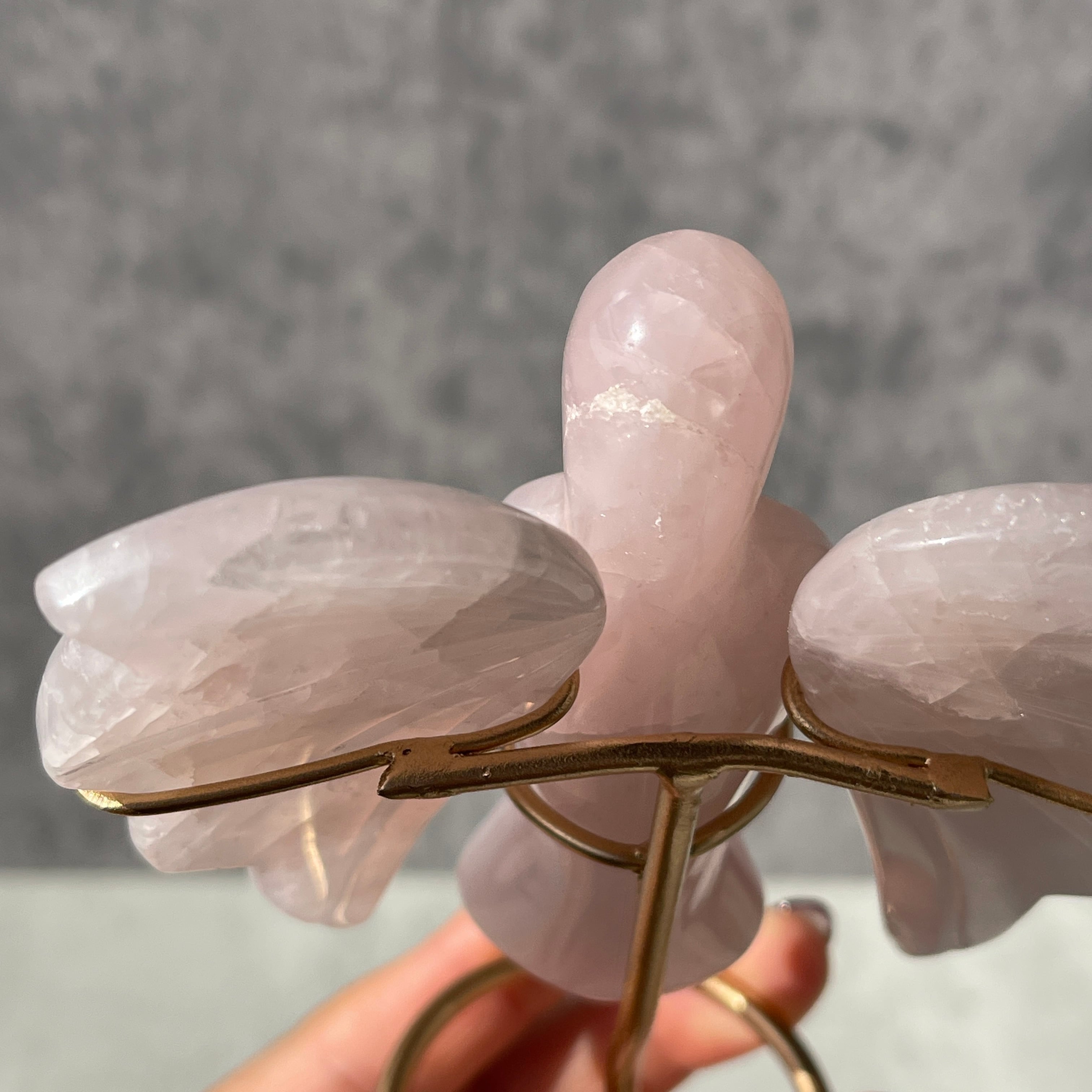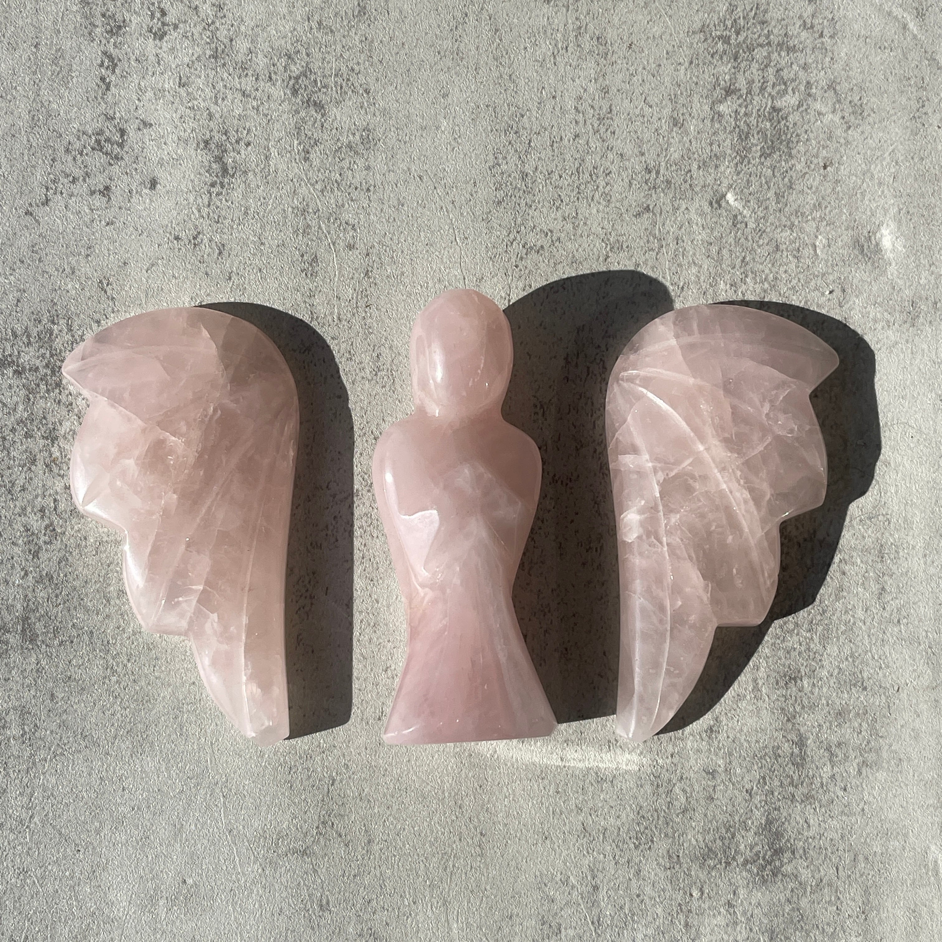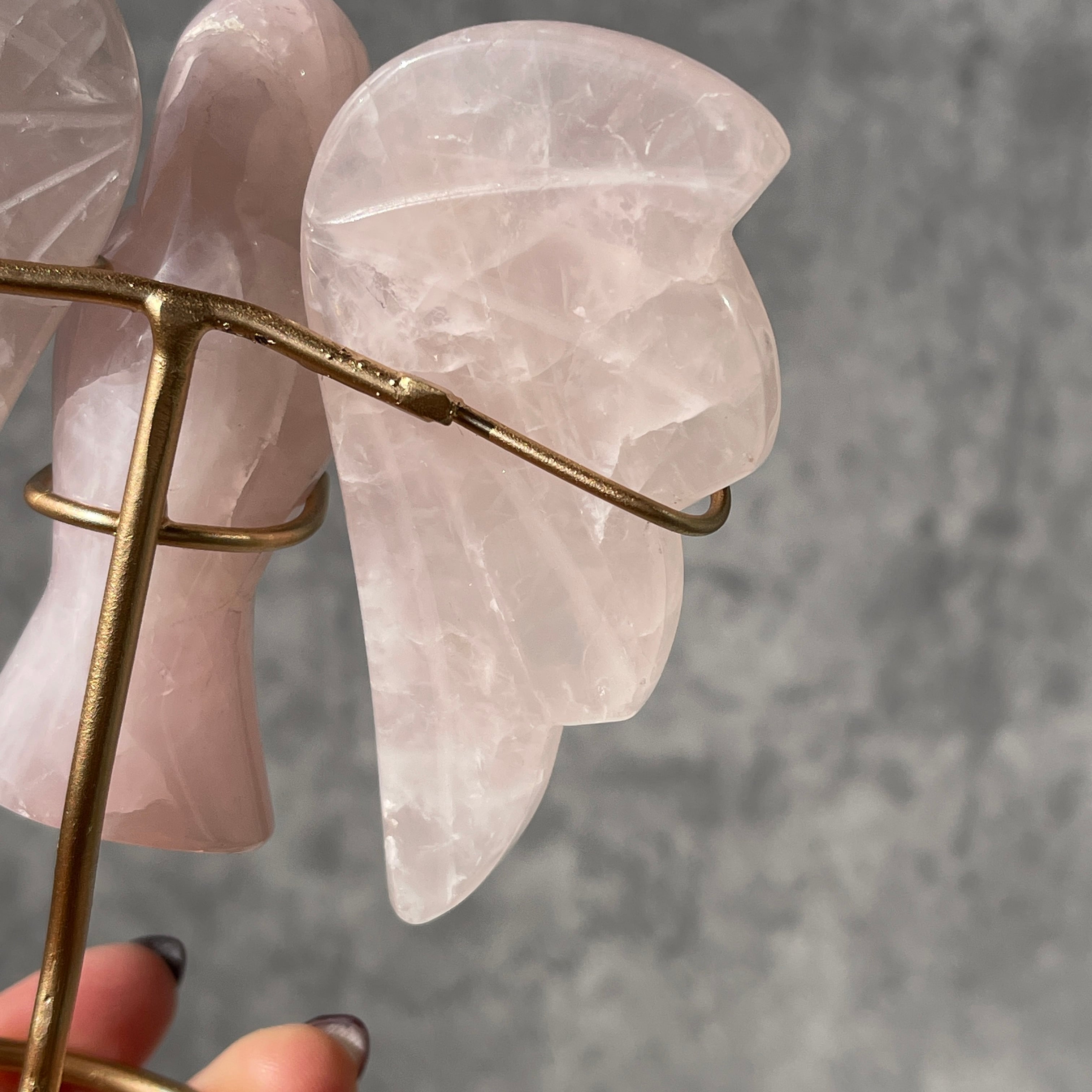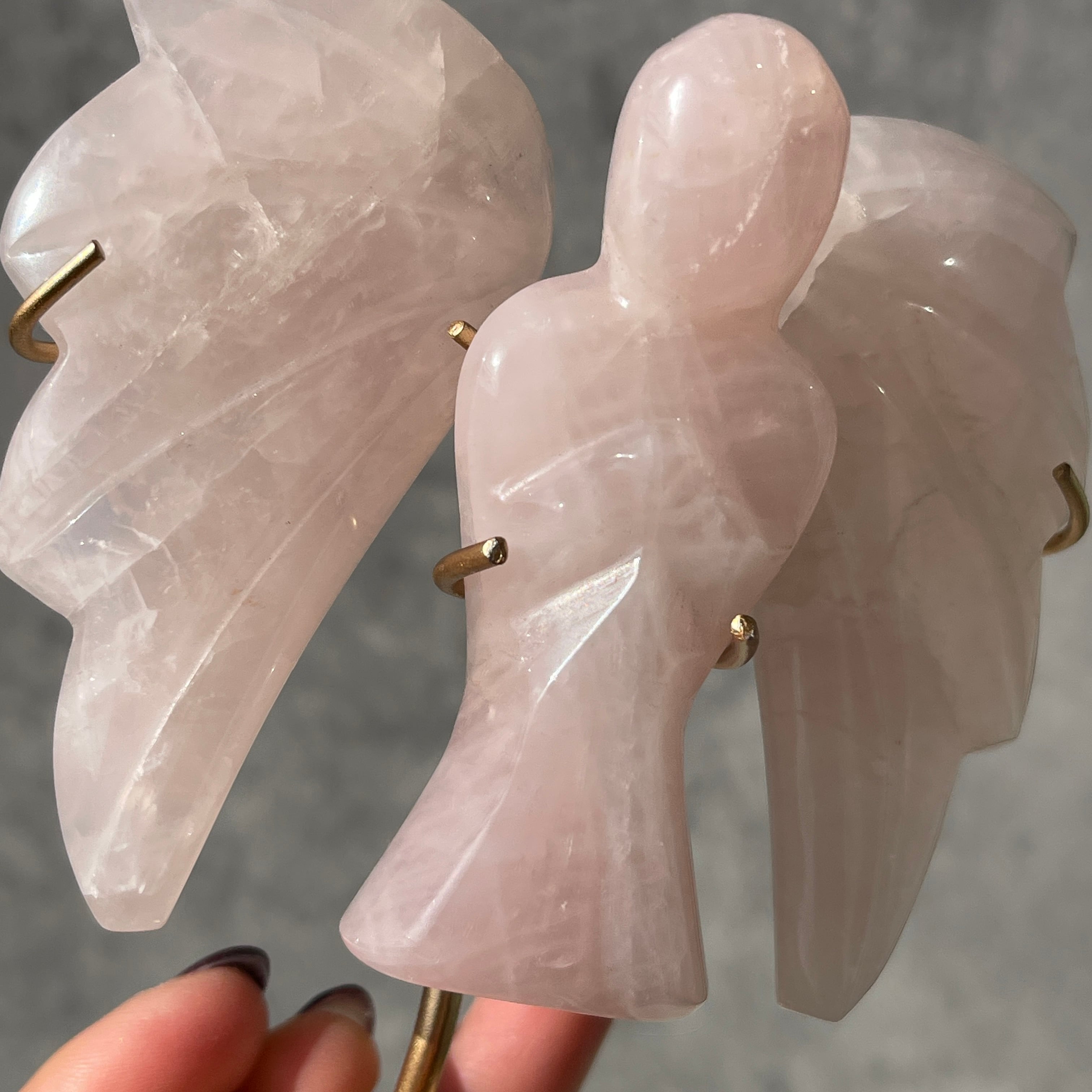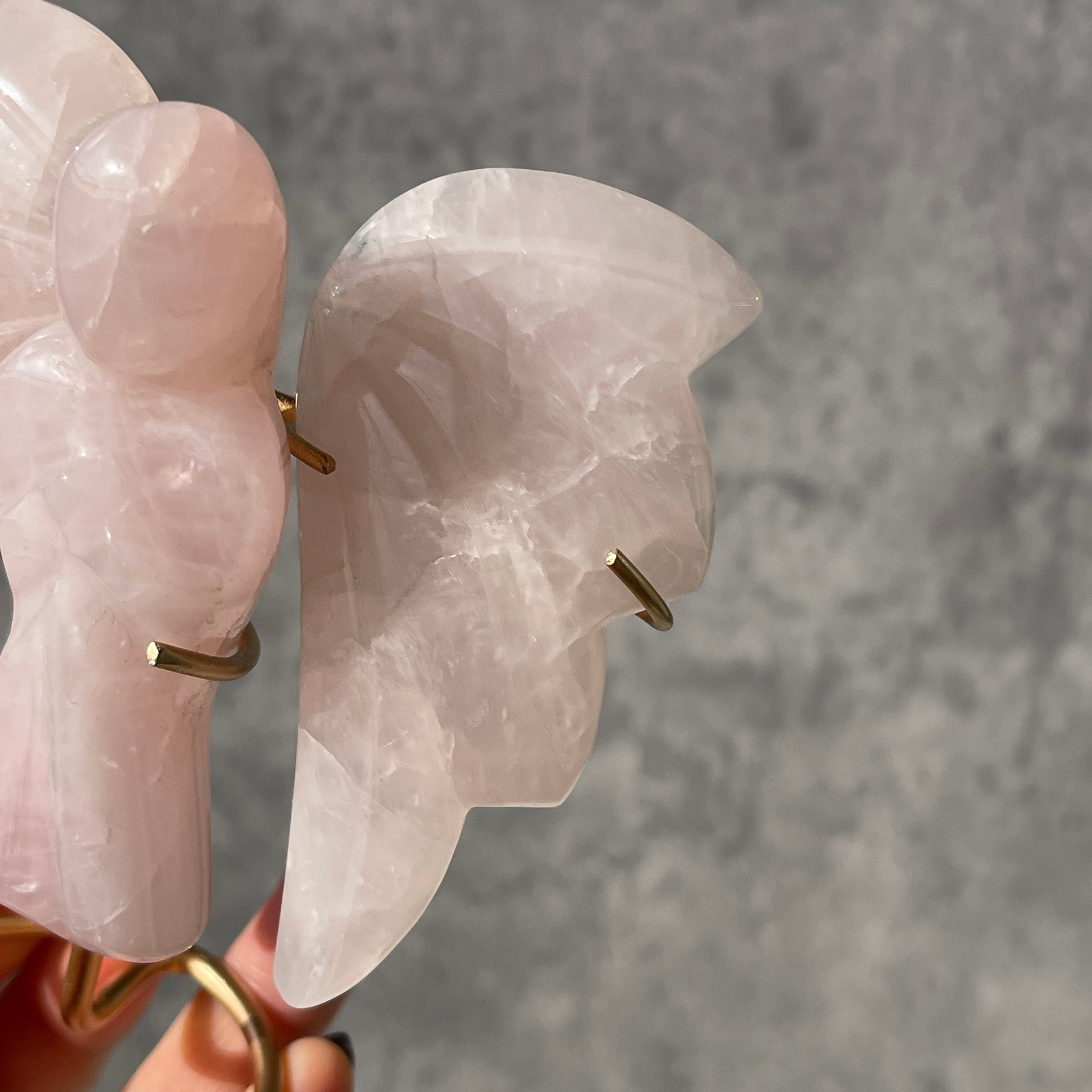 ブラジル・バイーア州産のローズクォーツを使用した、エンジェル彫刻のオブジェです。