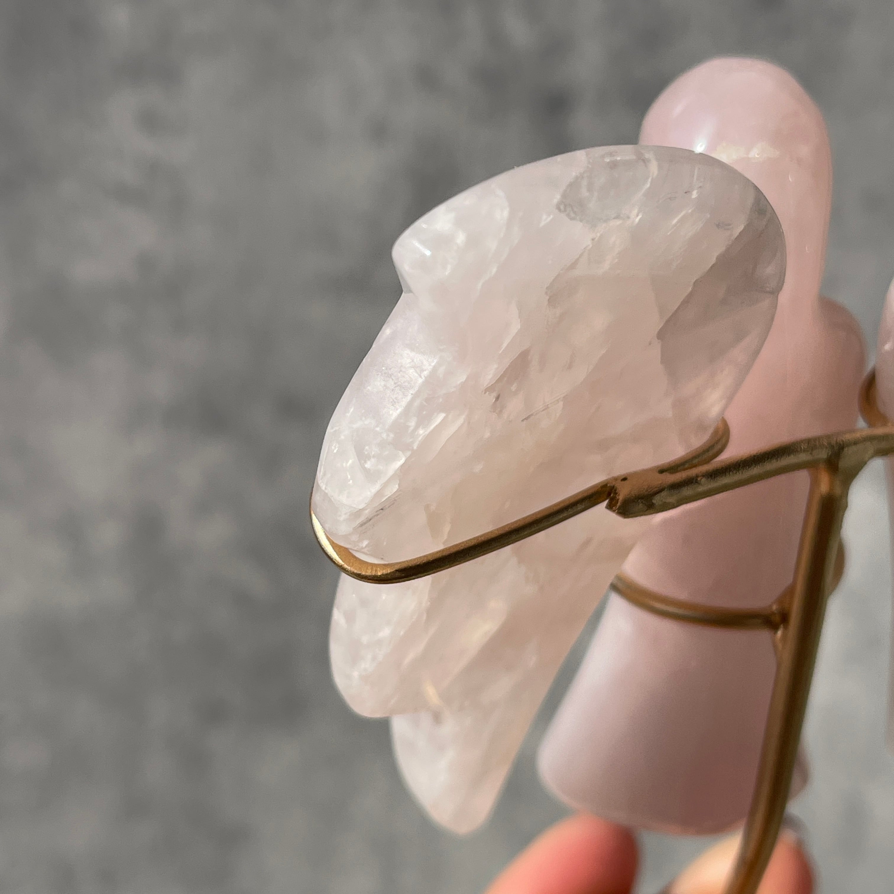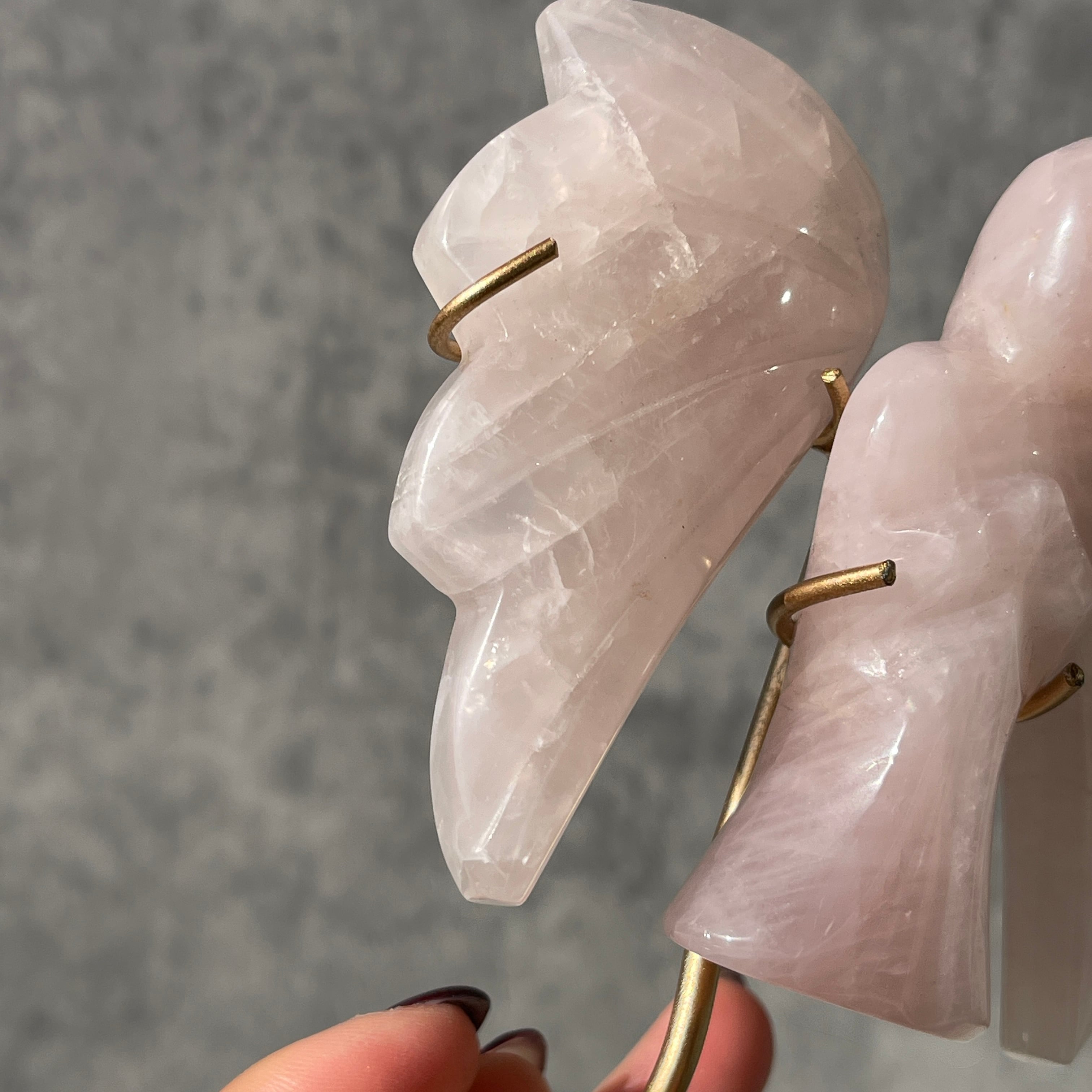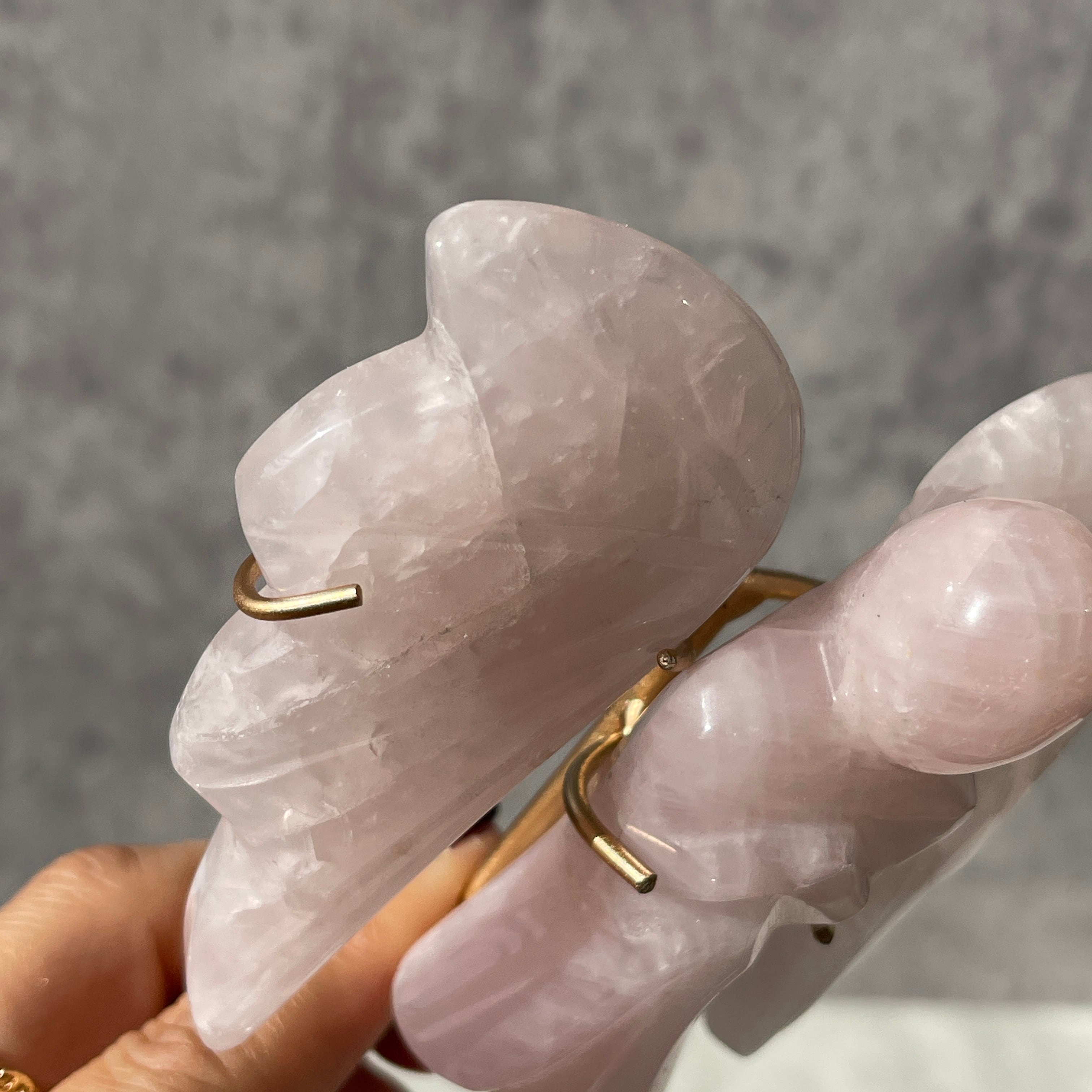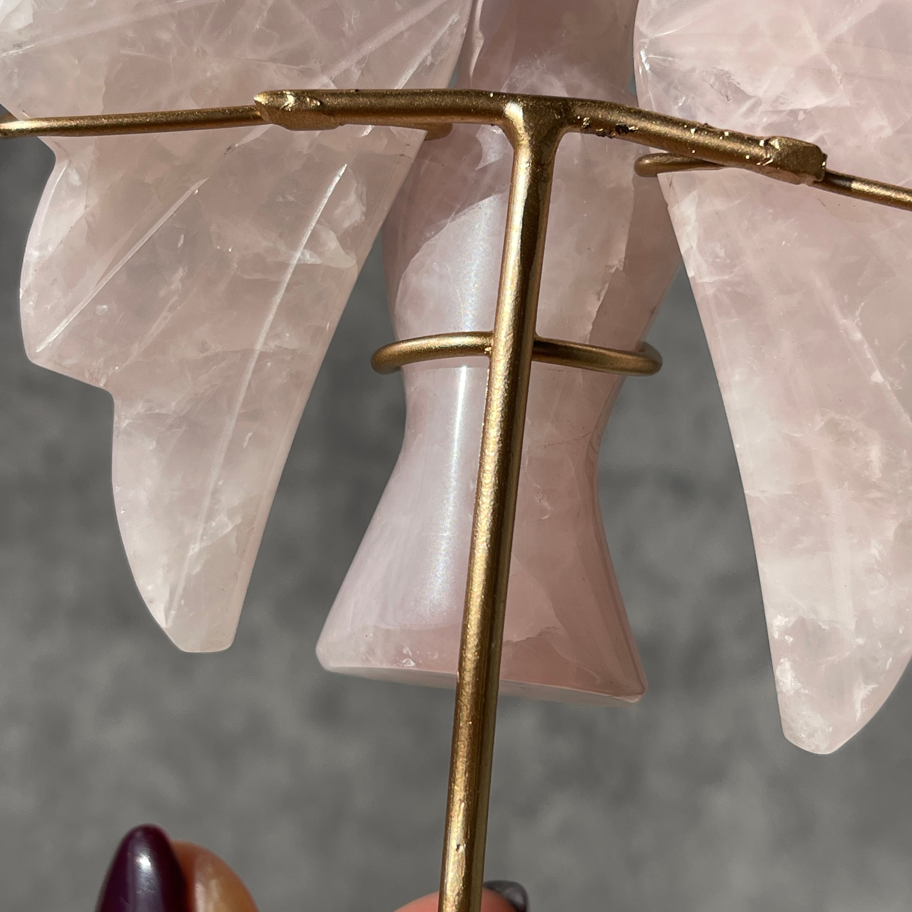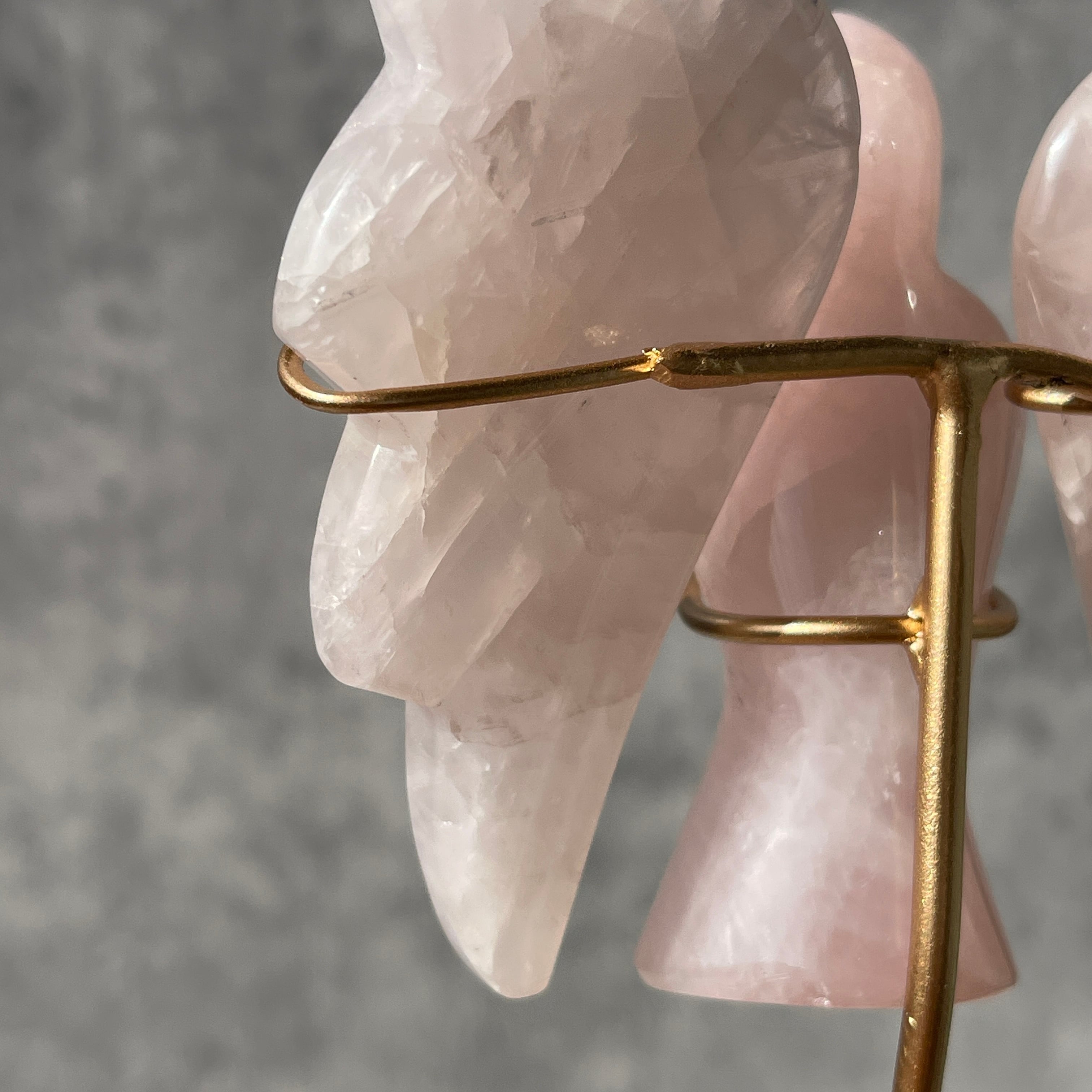 ブラジル・バイーア州産のローズクォーツを使用した、エンジェル彫刻のオブジェです。