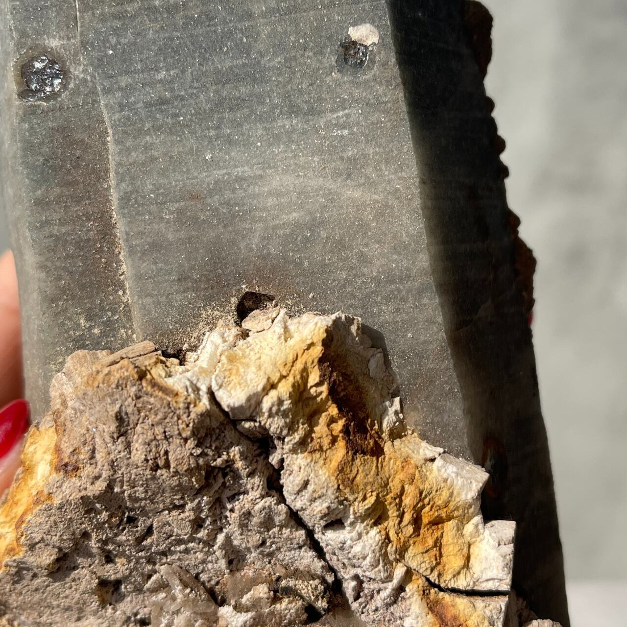 他の鉱物が共生しているように見えますが、残念ながら何かははっきりとわかっていません。