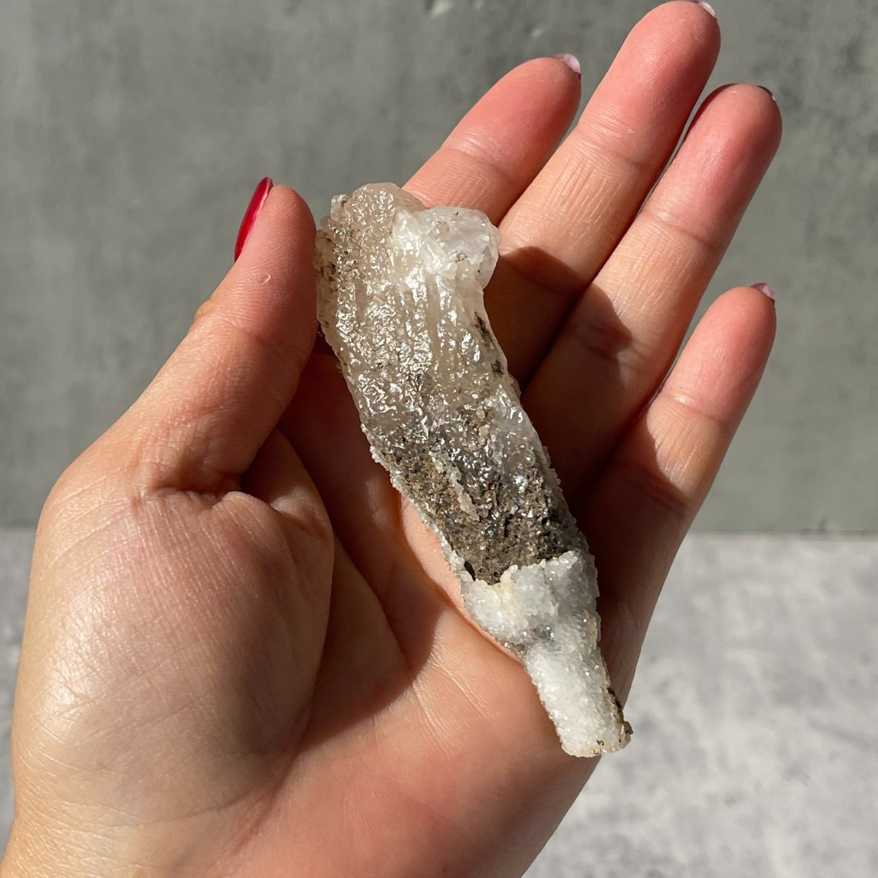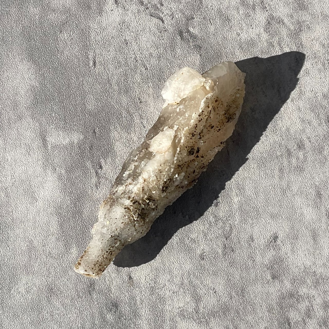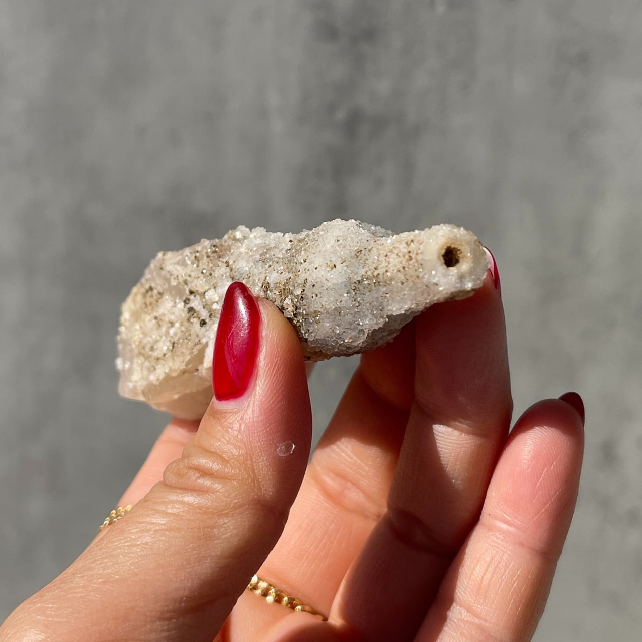 表面に無数の小さな結晶が群がったドゥルージークォーツとカルサイトが共生した、レソト大国(レストゥ)アルバーツ山産のストーン、天然石。