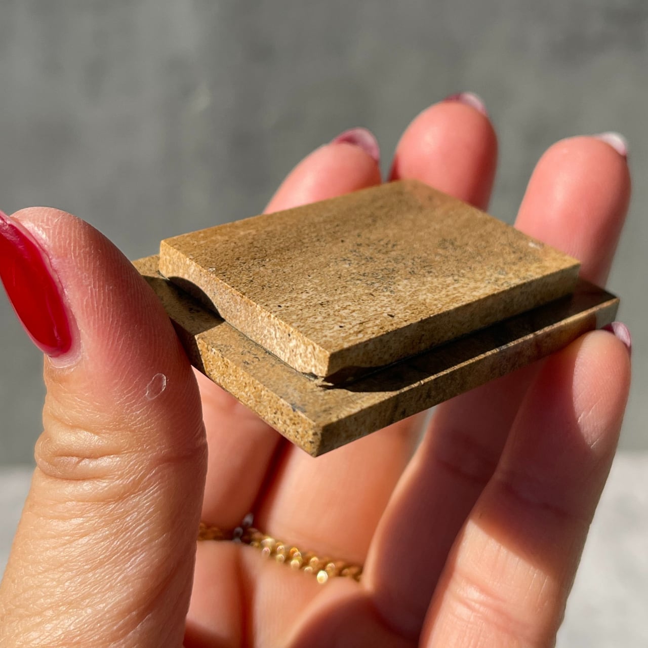 明るめなブラウンカラーのナミビア産ナミビアンデザートピクチャーストーンのボックス。