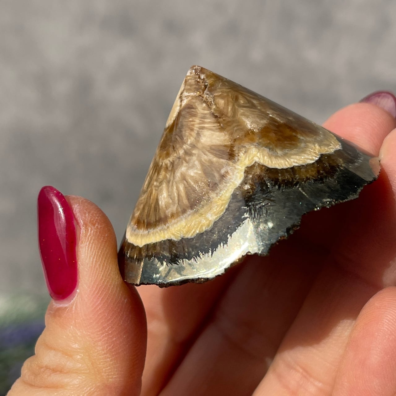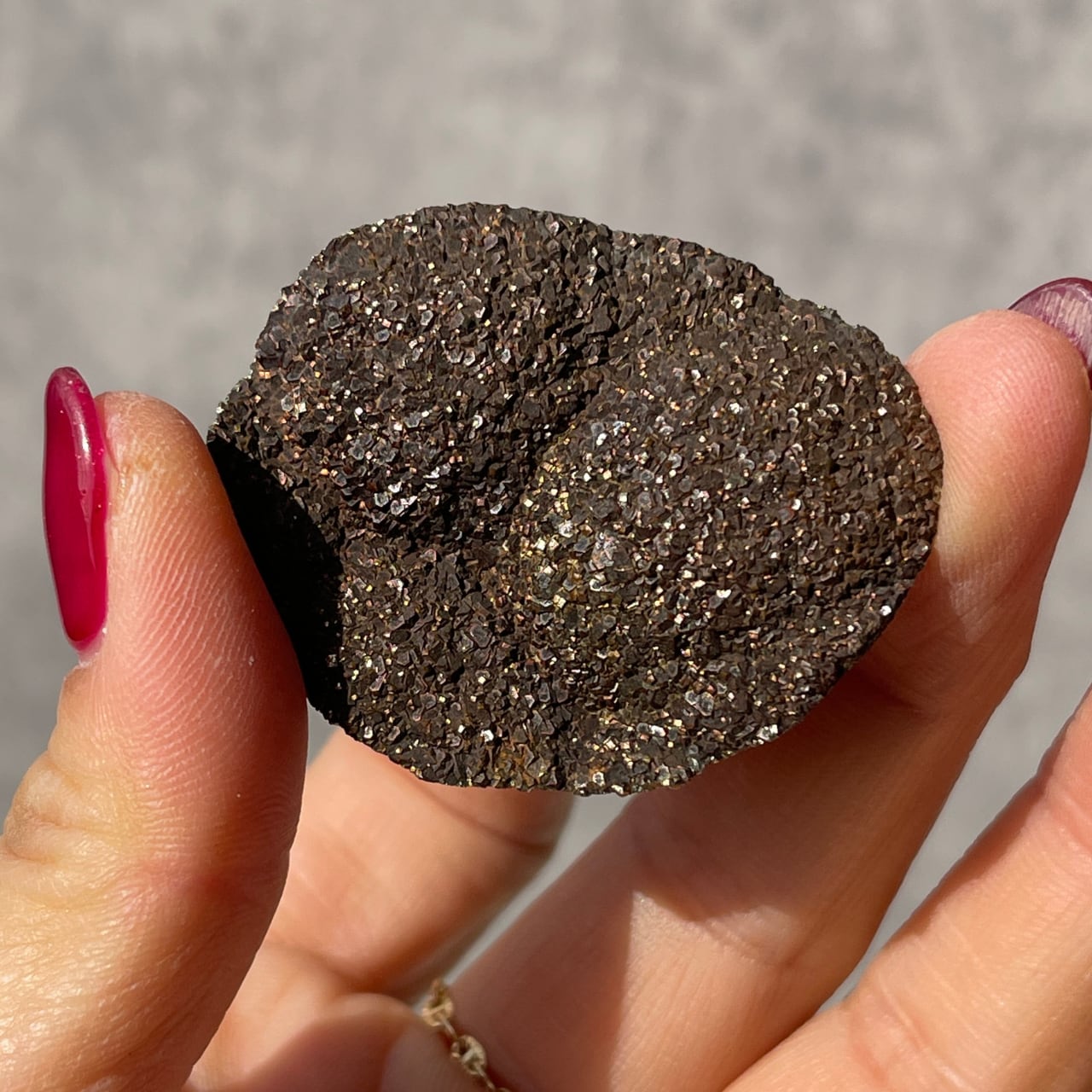 一見、ダークな見た目のパイライトは、黄鉄鋼の金属のようなメタリックな輝きが特徴です。