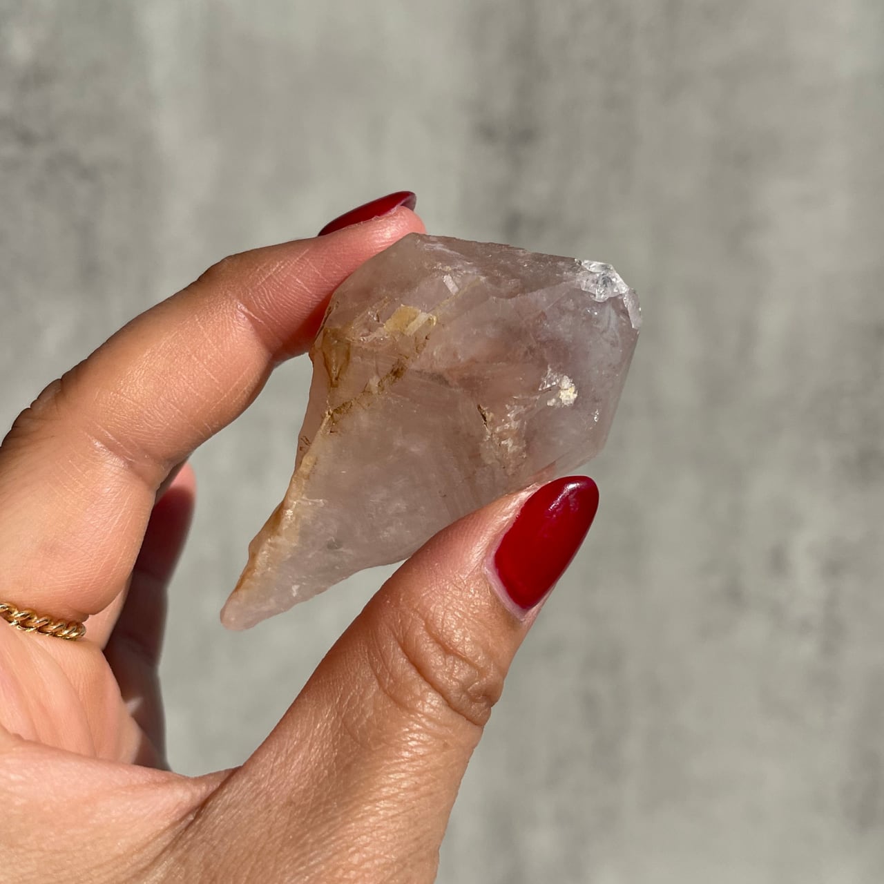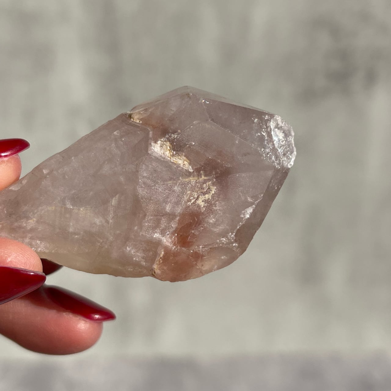 ピンキッシュアメジストはピンクアメジストの一種で、鉄イオンによる紫の発色がごく薄くピンク色に見えるアメジストのことです。