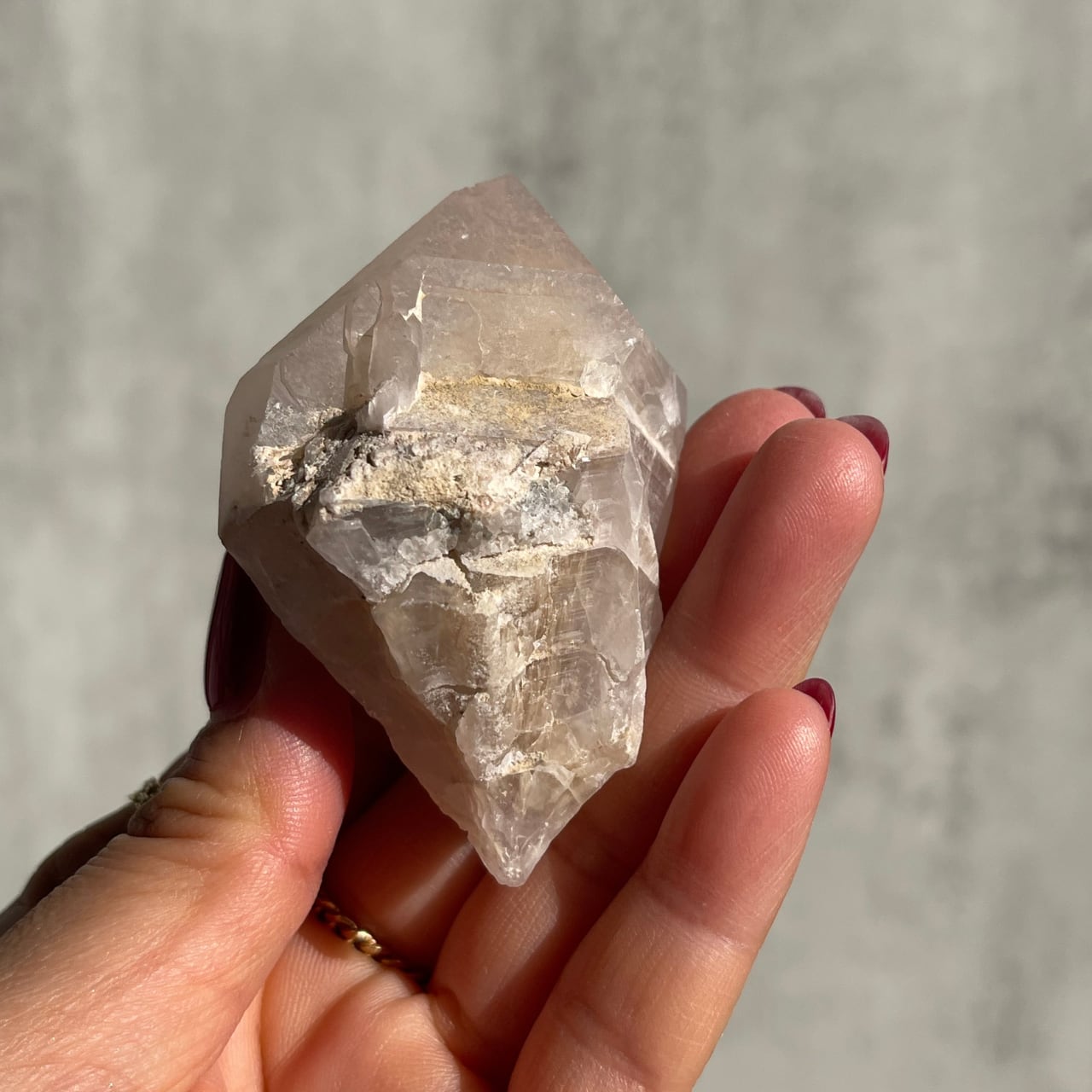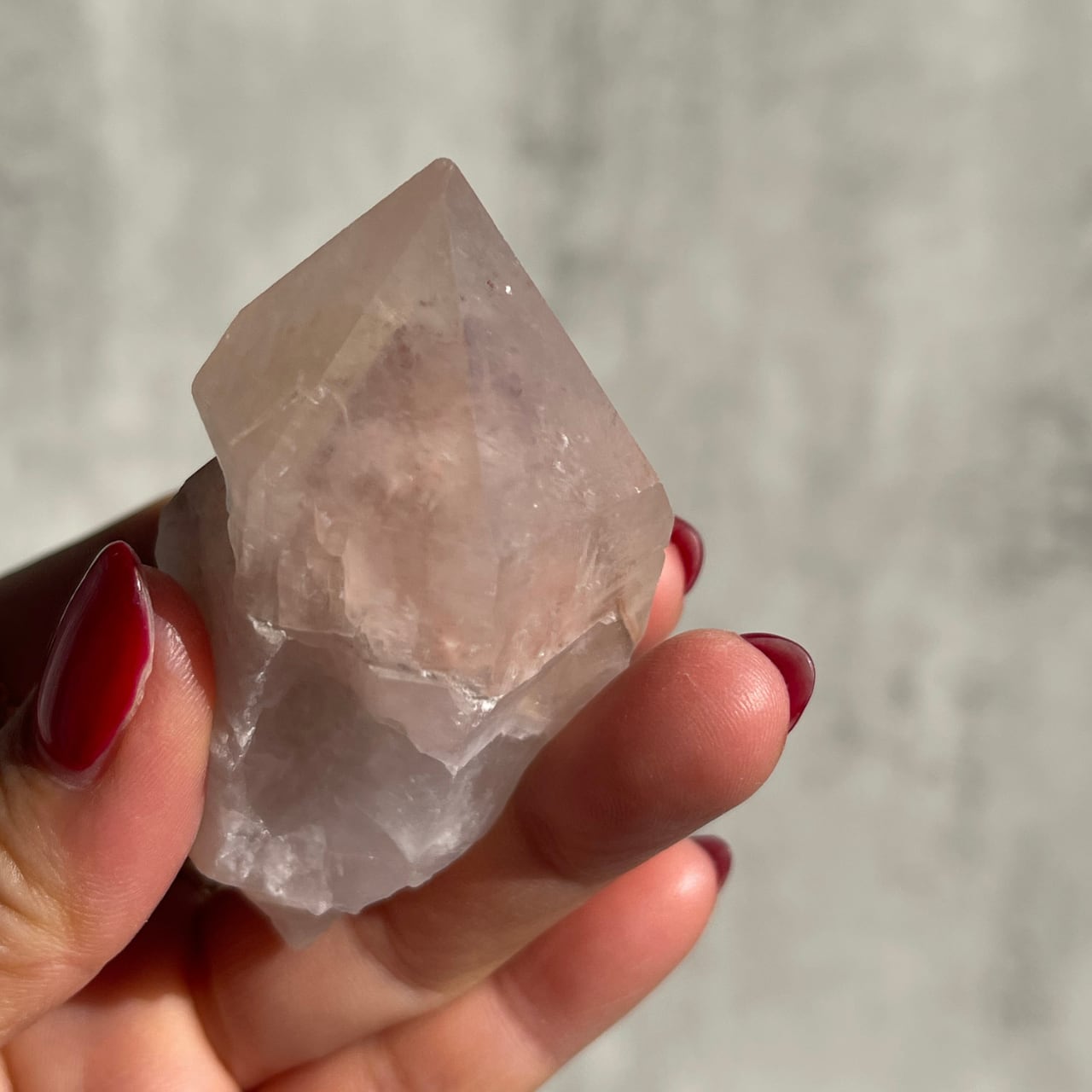 うっすらピンク色に色付いた優しい色合いの、ブラジル・バイーア州ジャコビナ産ピンキッシュアメジスト。