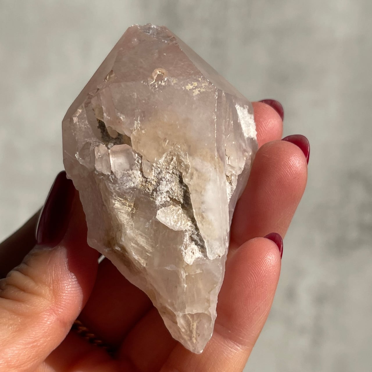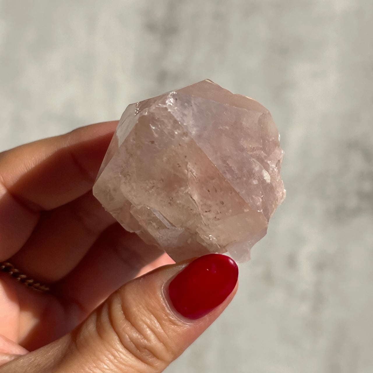 ピンキッシュアメジストはピンクアメジストの一種で、鉄イオンによる紫の発色がごく薄くピンク色に見えるアメジストのことです。