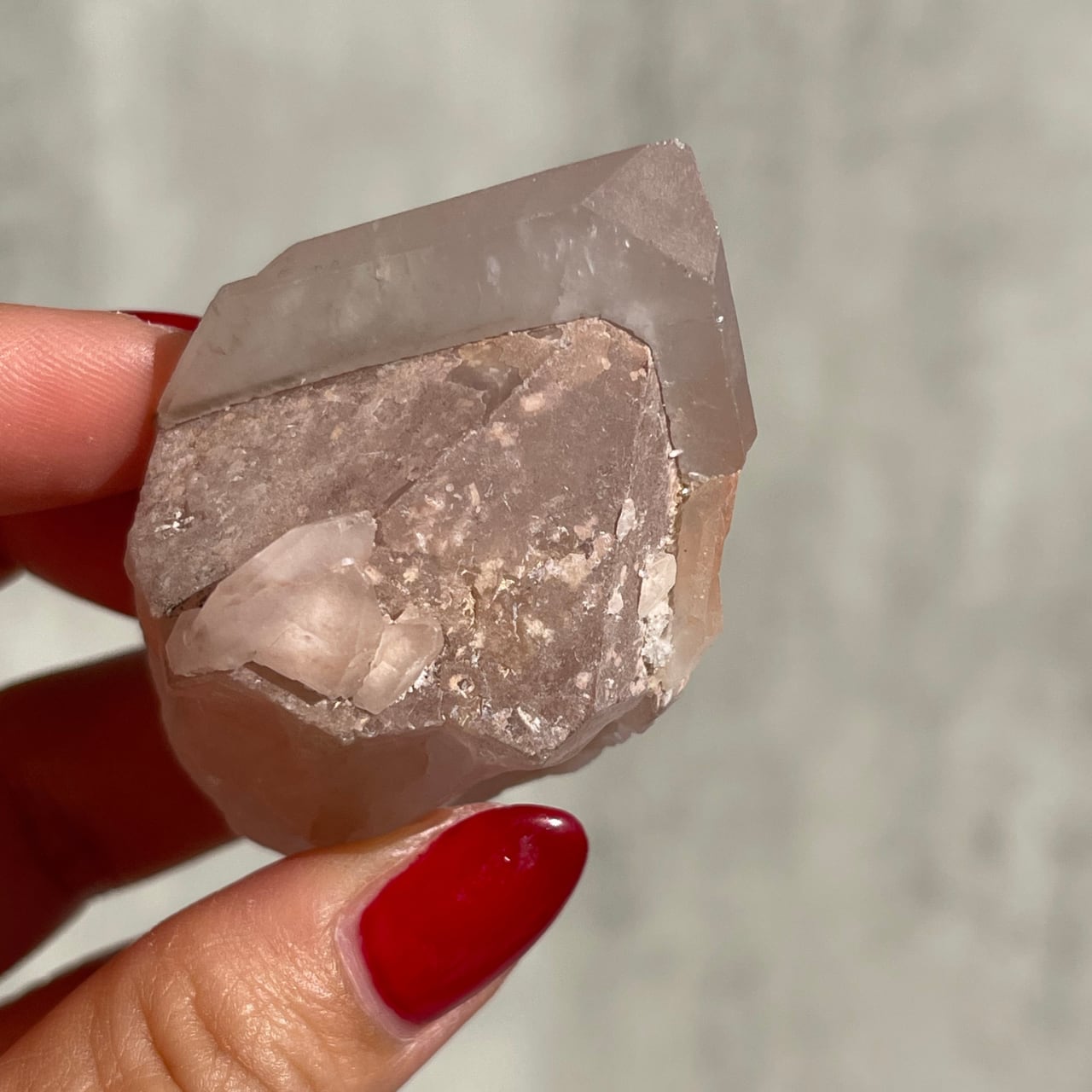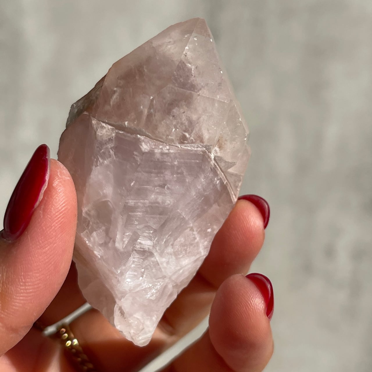 ピンキッシュアメジストはピンクアメジストの一種で、鉄イオンによる紫の発色がごく薄くピンク色に見えるアメジストのことです。