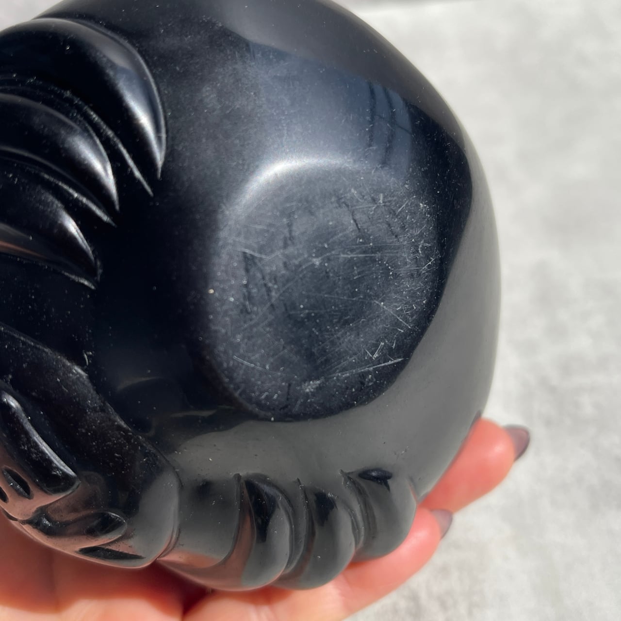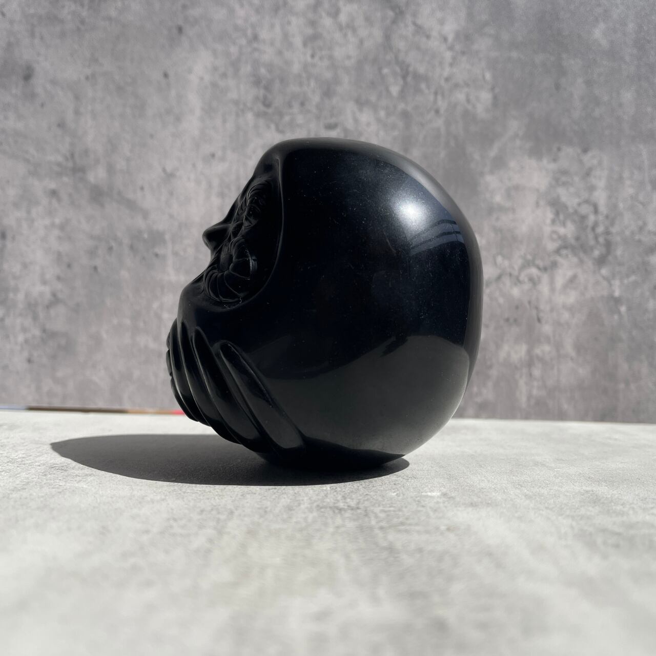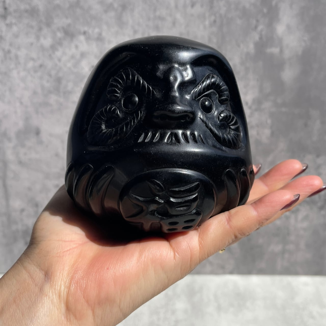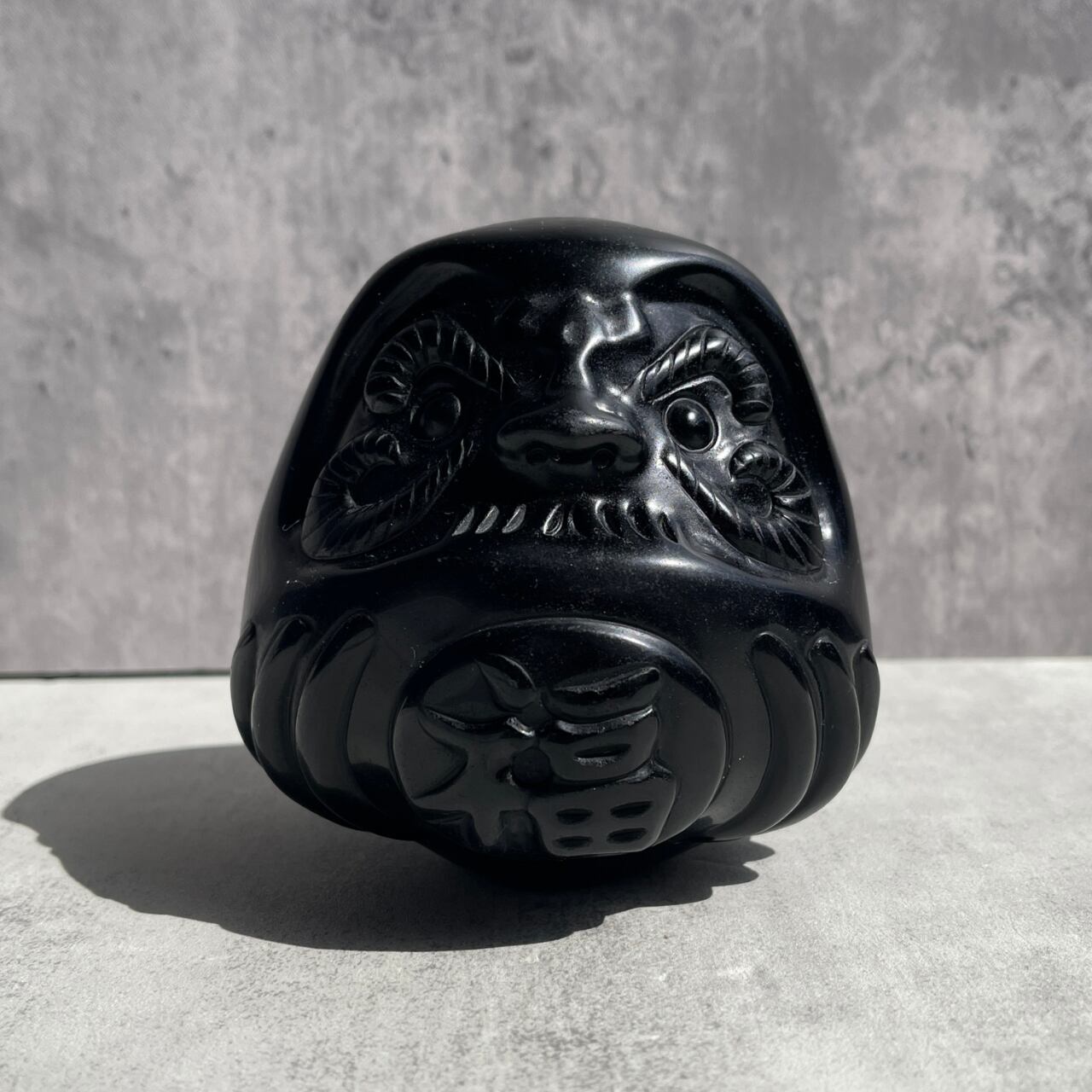透明感のあるブラックカラーが魅力の、達磨の形をしたブラックオブジディアン。