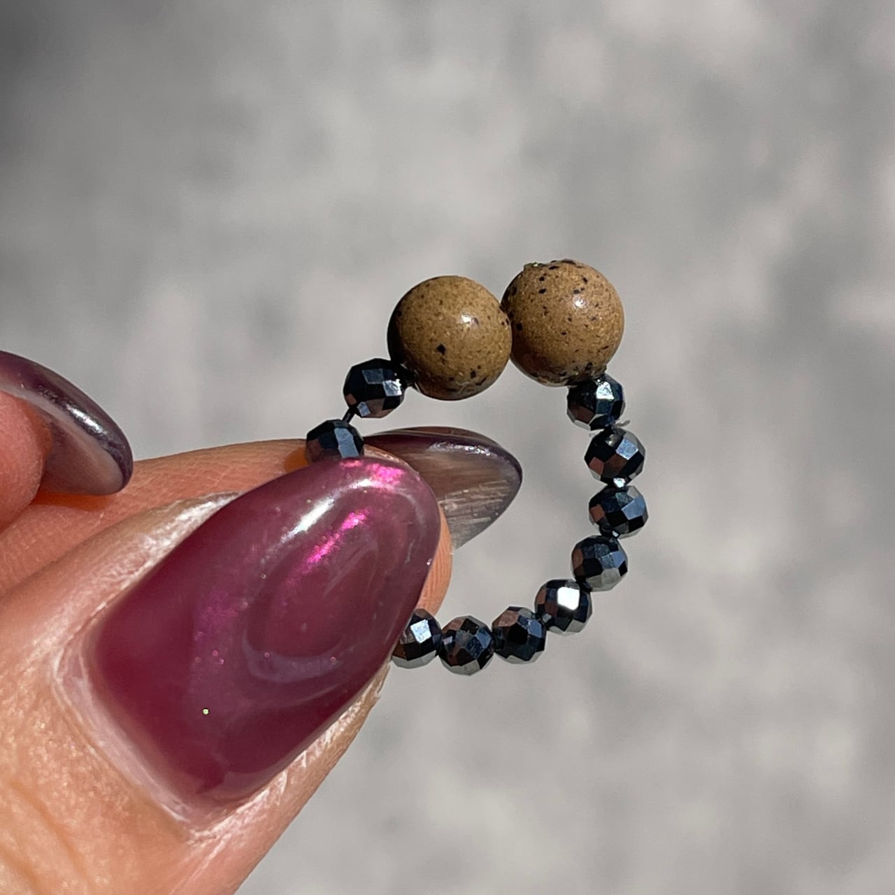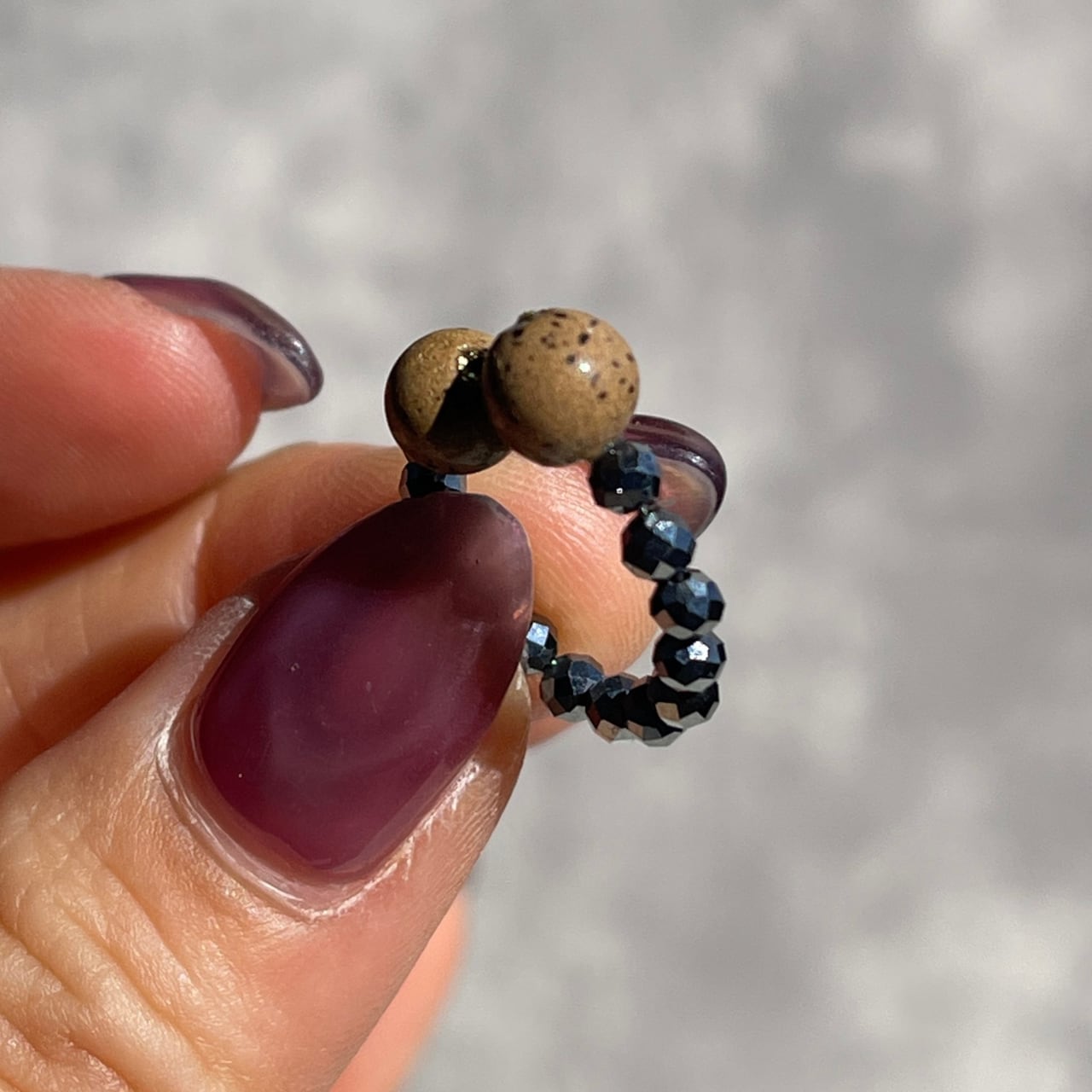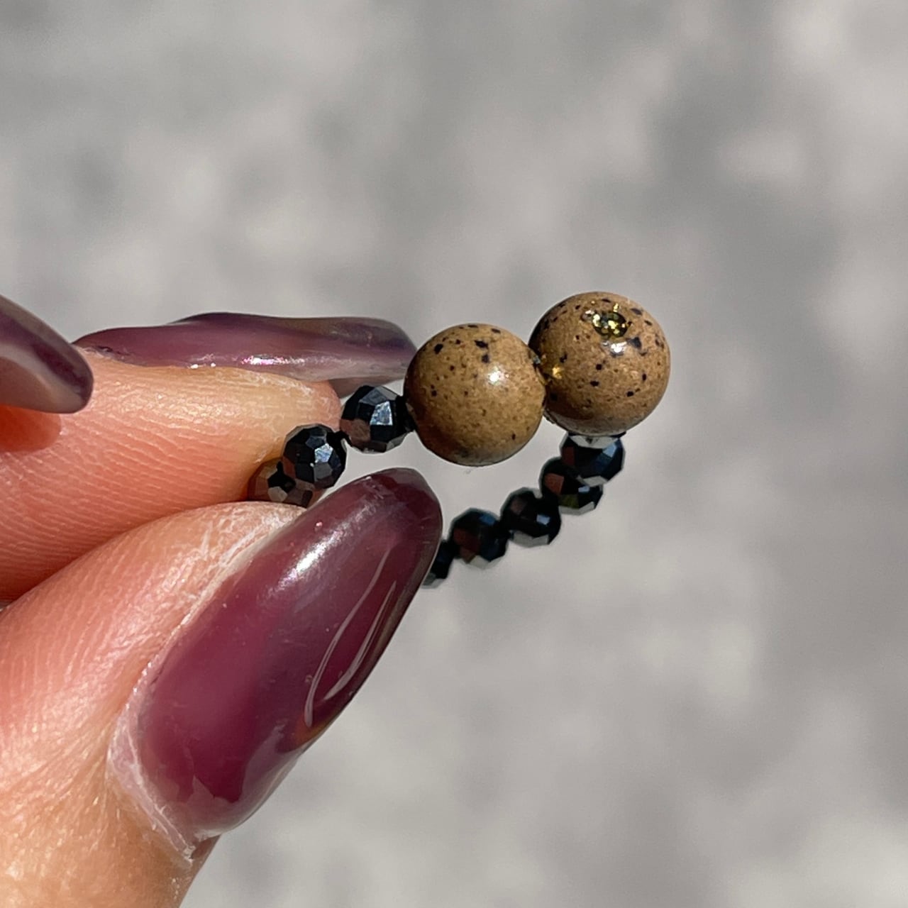 ベージュブラウンの北投石が付いた、メタリックブラックが印象的な、