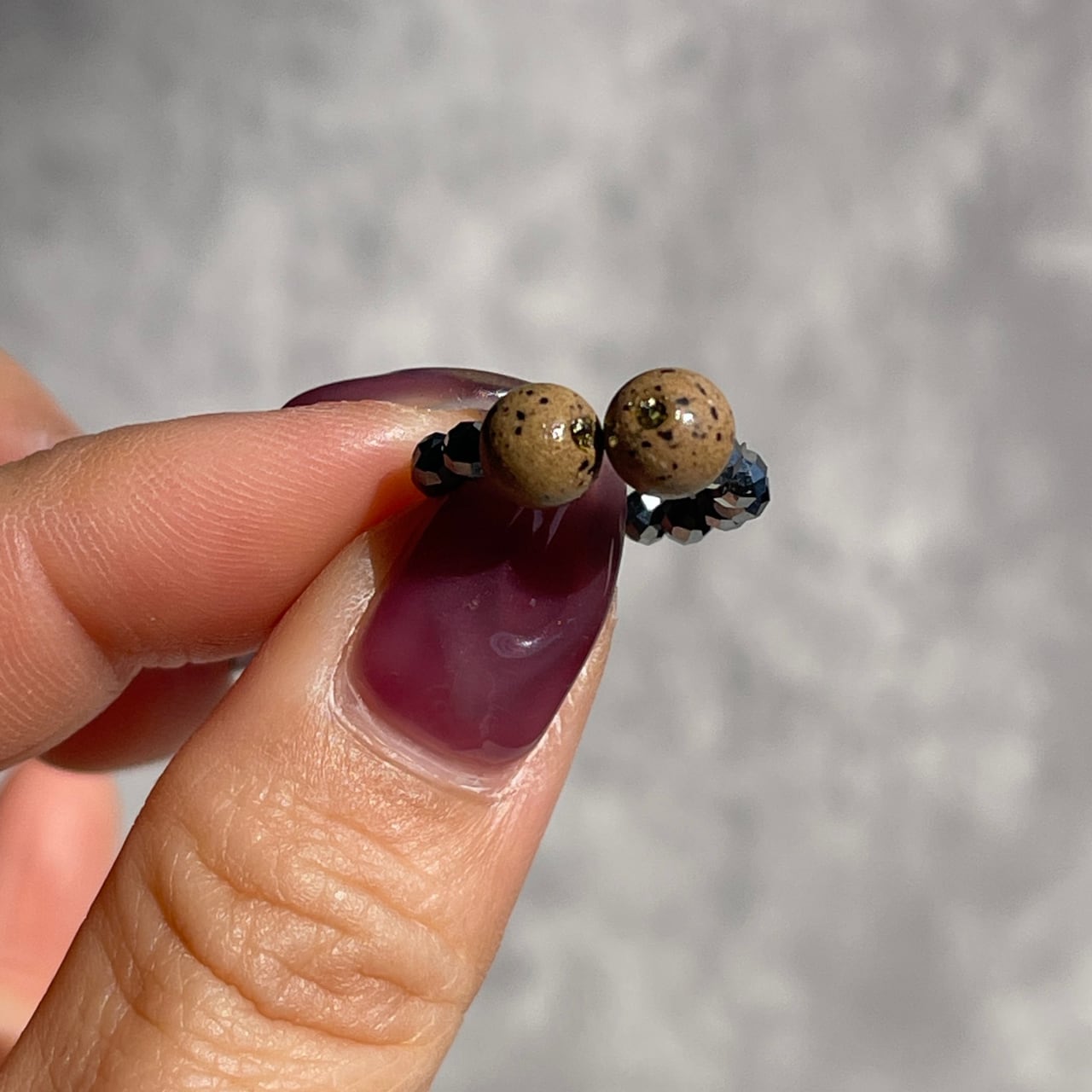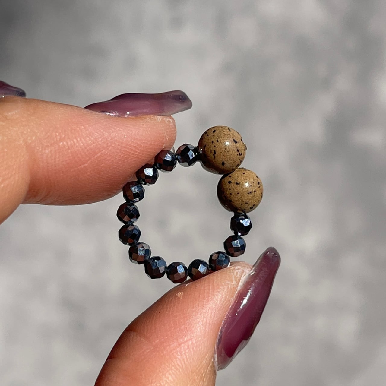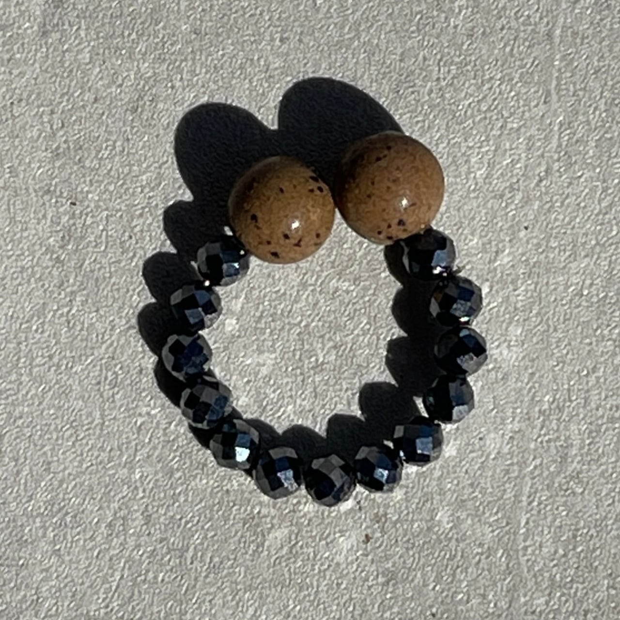 ベージュブラウンの北投石が付いた、メタリックブラックが印象的な、