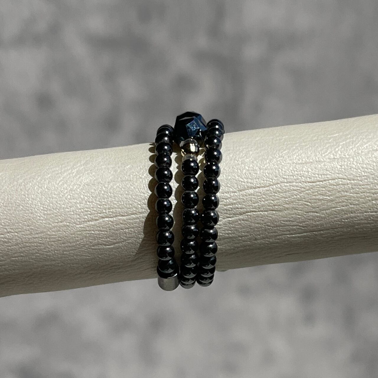 ヘマタイトとテラヘルツに、K18ミラーボールがアクセントを添えるお洒落なリング。
