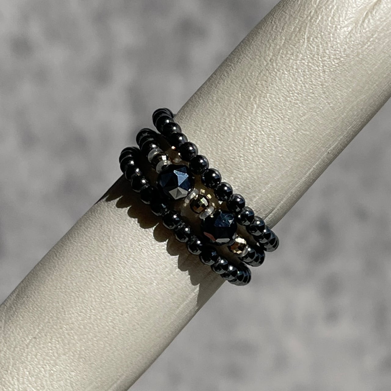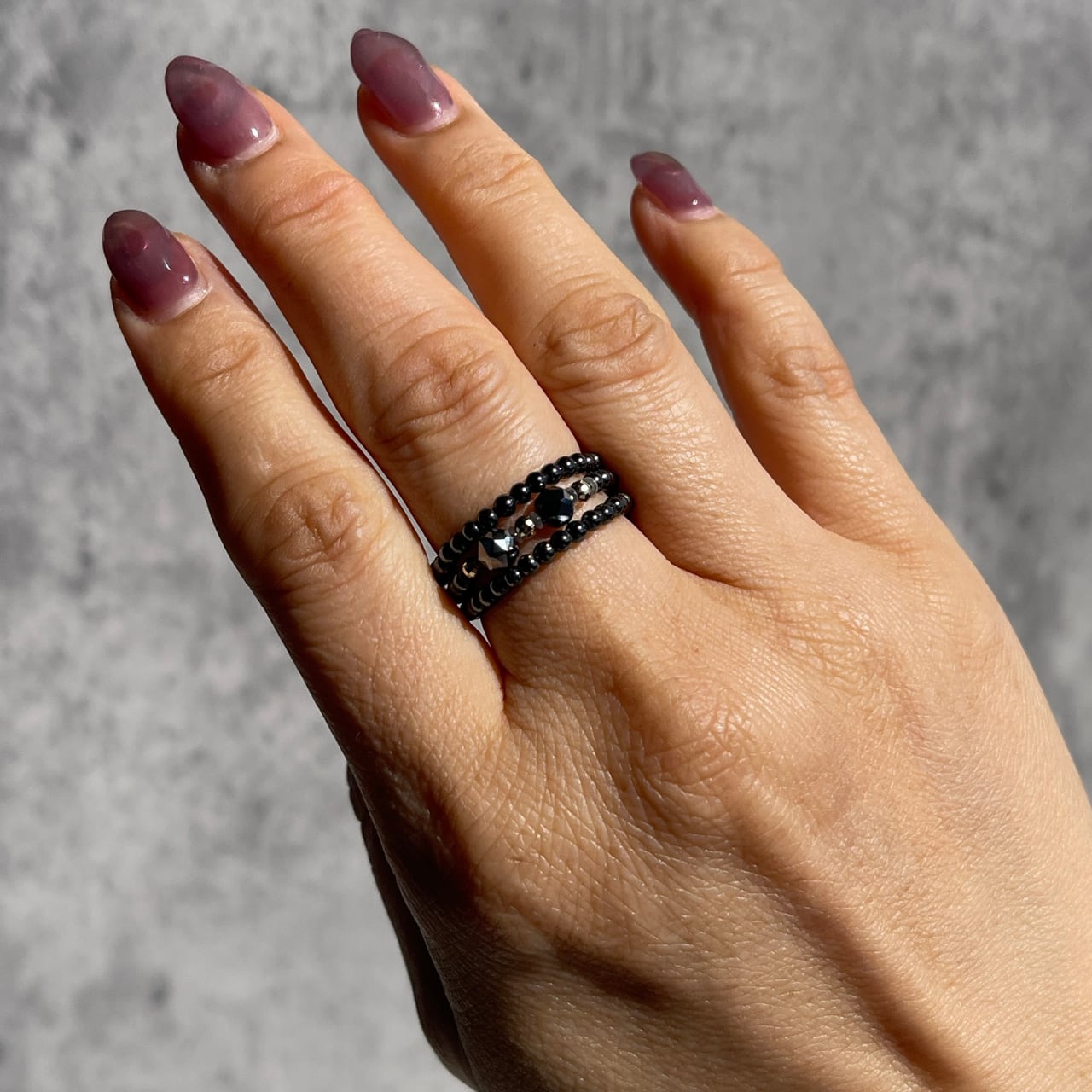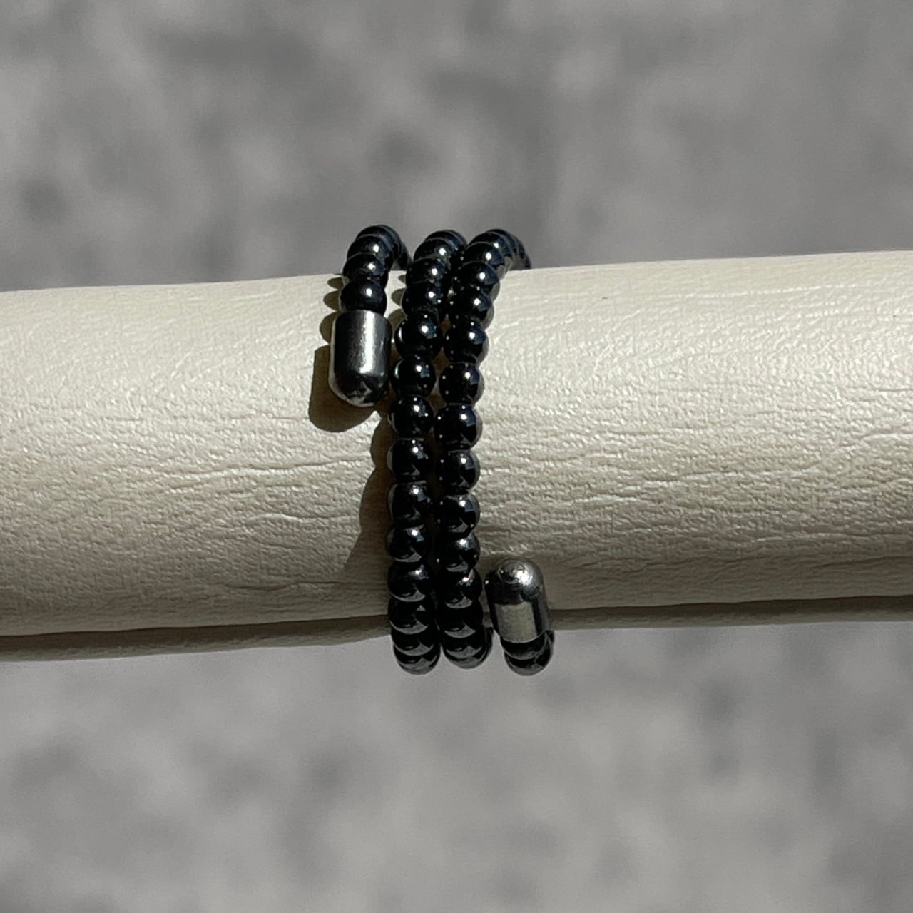 ダークな輝きと魅力が光る、ぐるぐる巻きつけるタイプのフリーサイズのリングです。