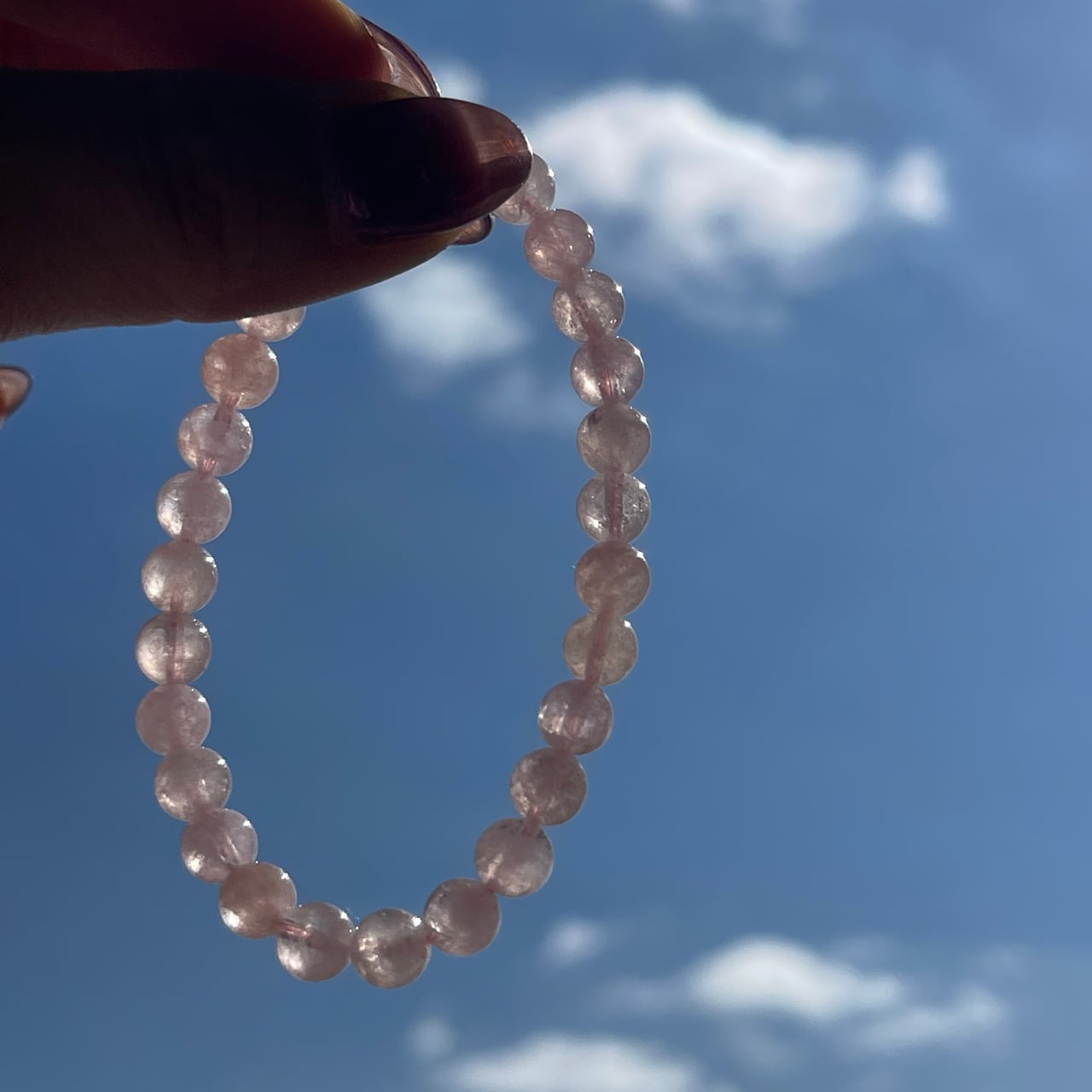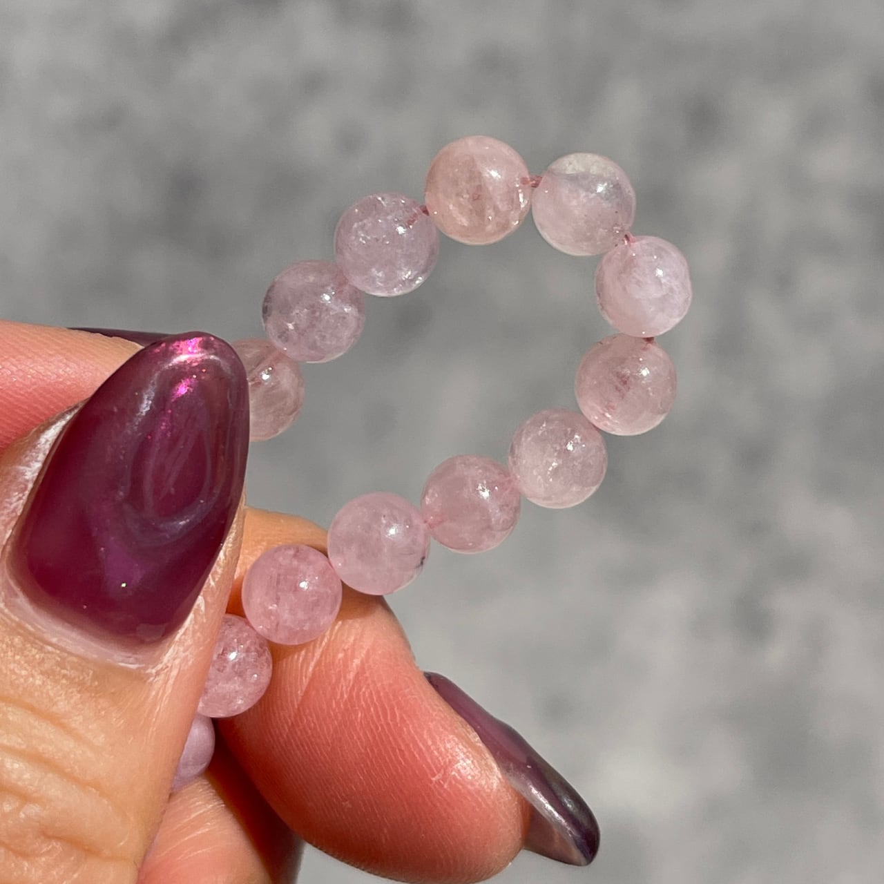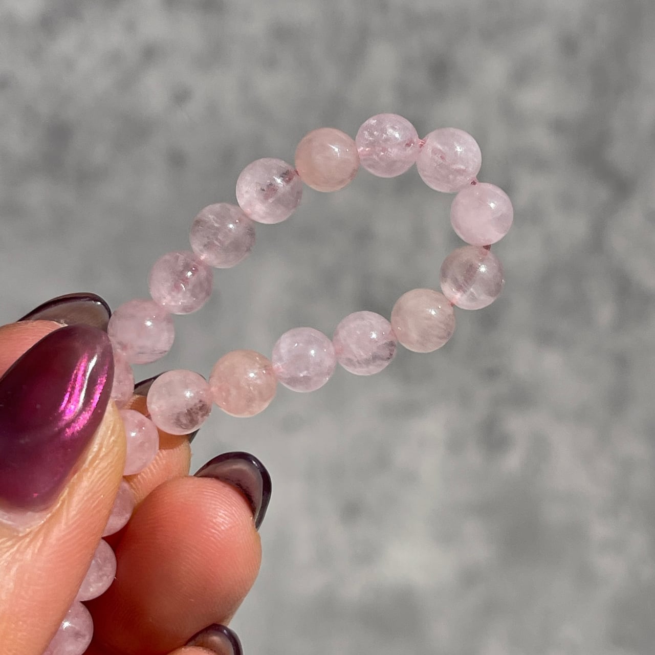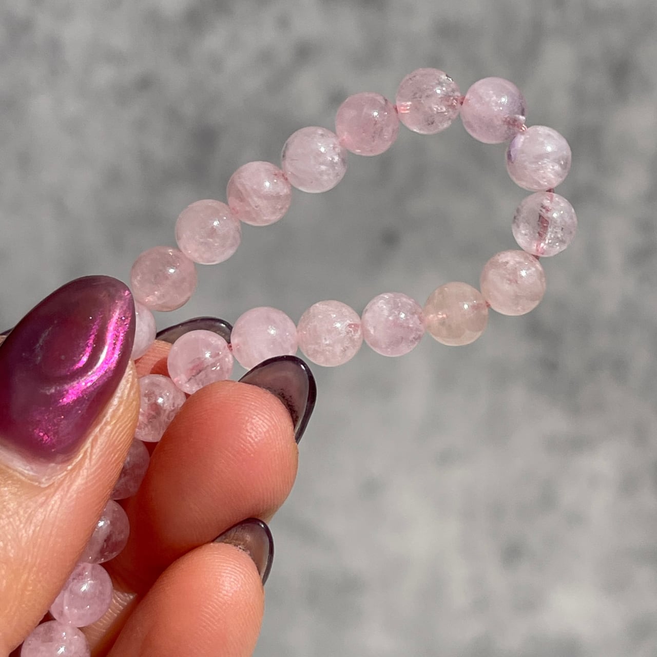 女性らしい印象の淡いピンク色が可愛らしい、ブラジル産モルガナイトのブレスレット。