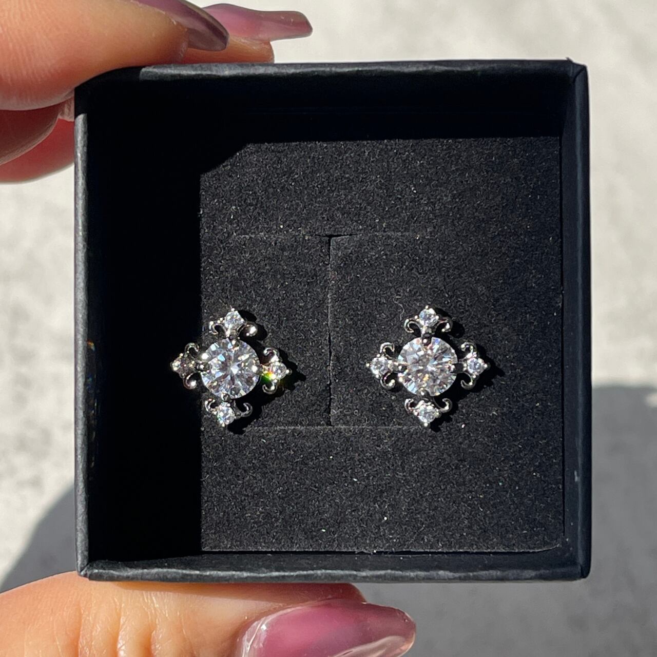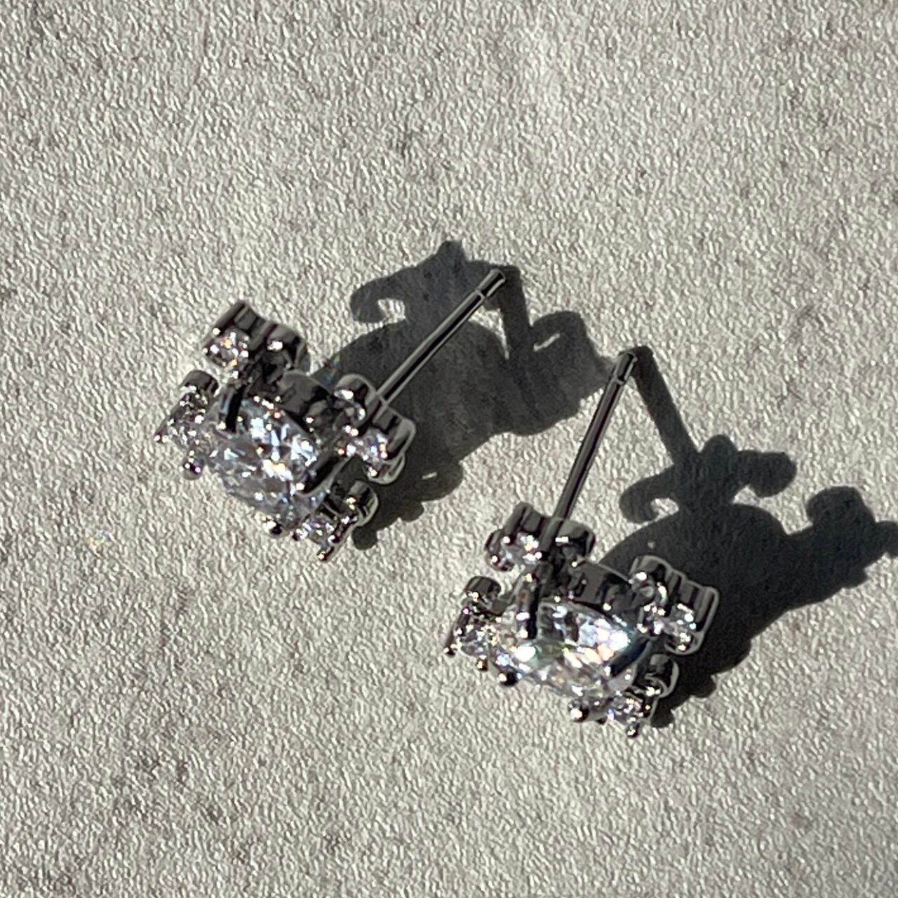 キラキラ輝くモアサナイトを使用した、クロスピアス。