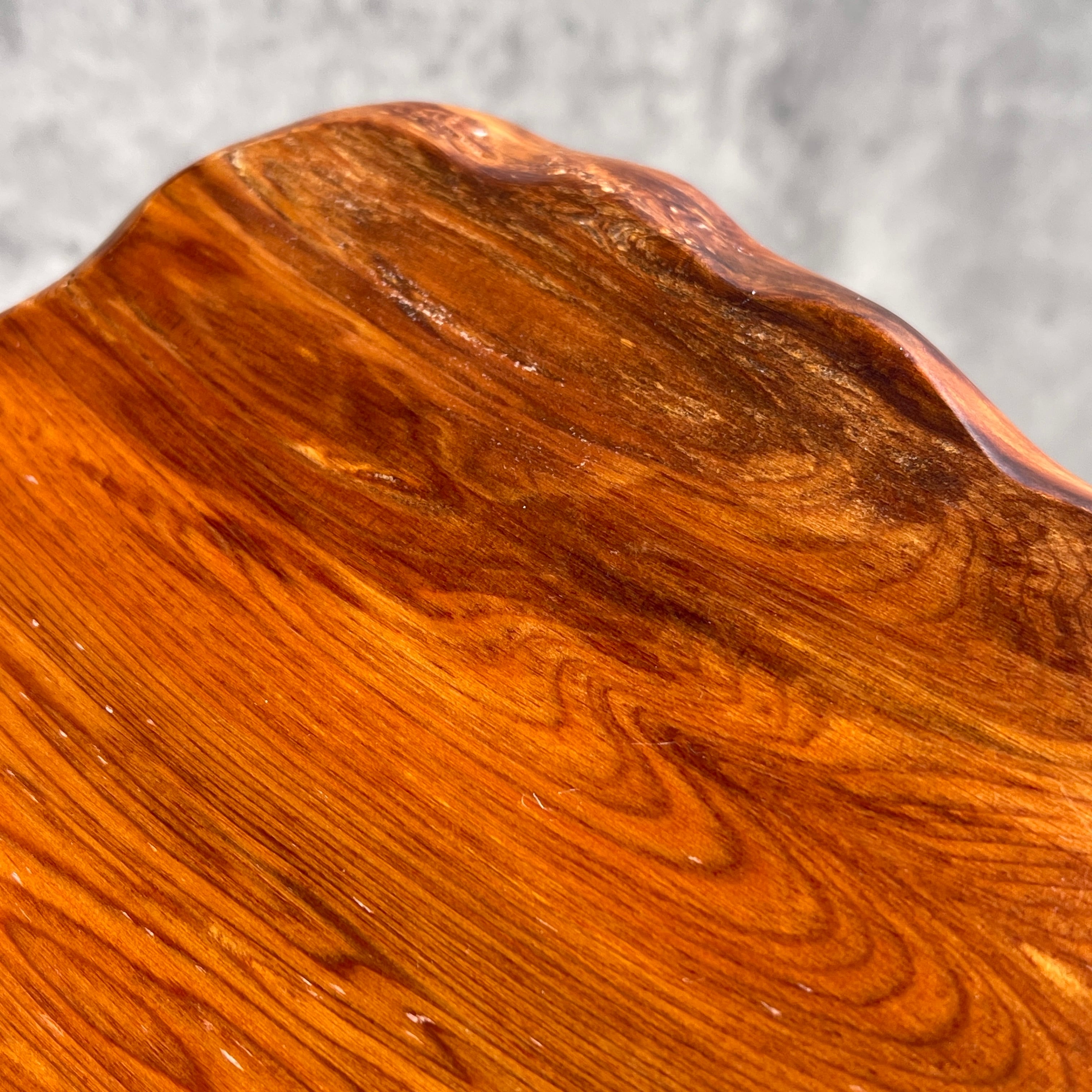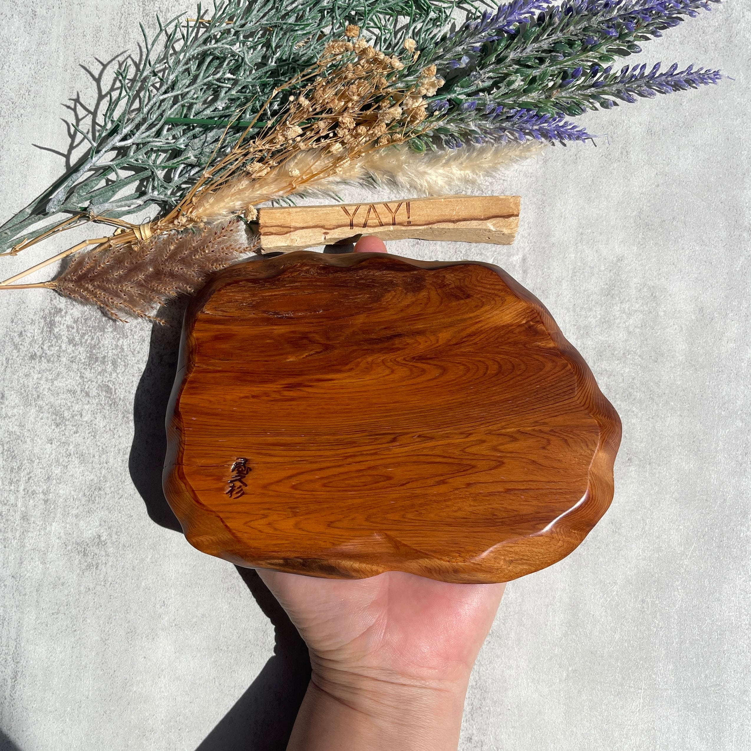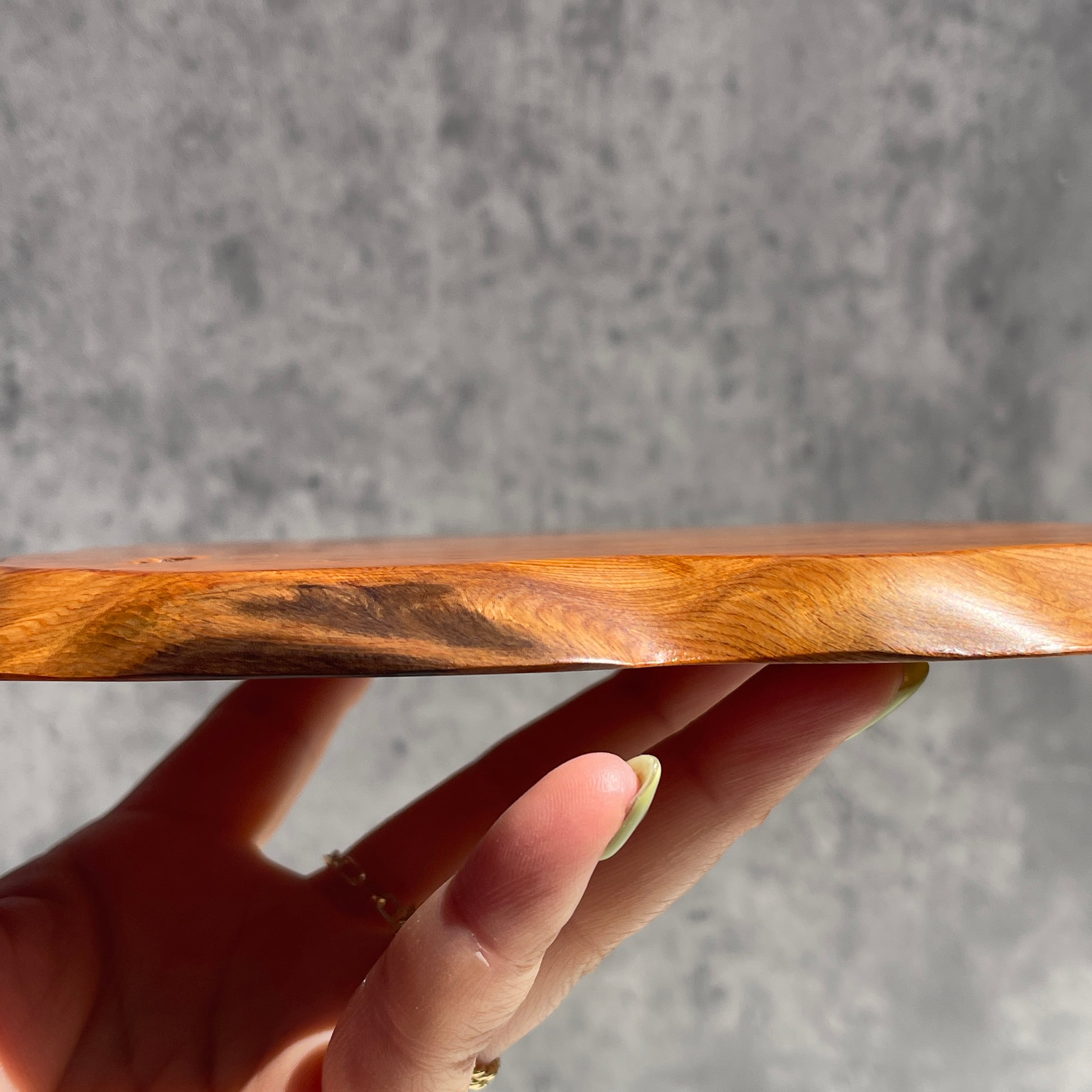 側面には屋久杉特有の樹脂層が走り、磨き上げられた表面は深みのある光沢を放ちます。