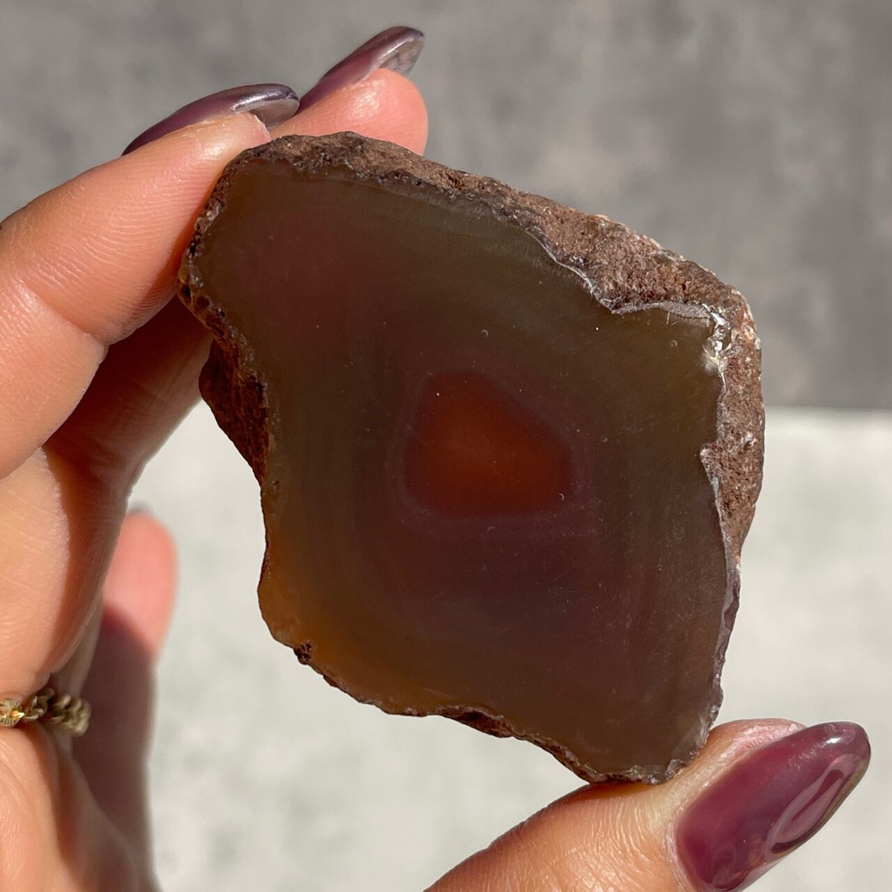 アゲート特有の縞模様と色合いが美しく、光にかざすと半透明の質感を見ることができます。