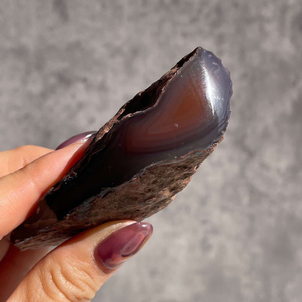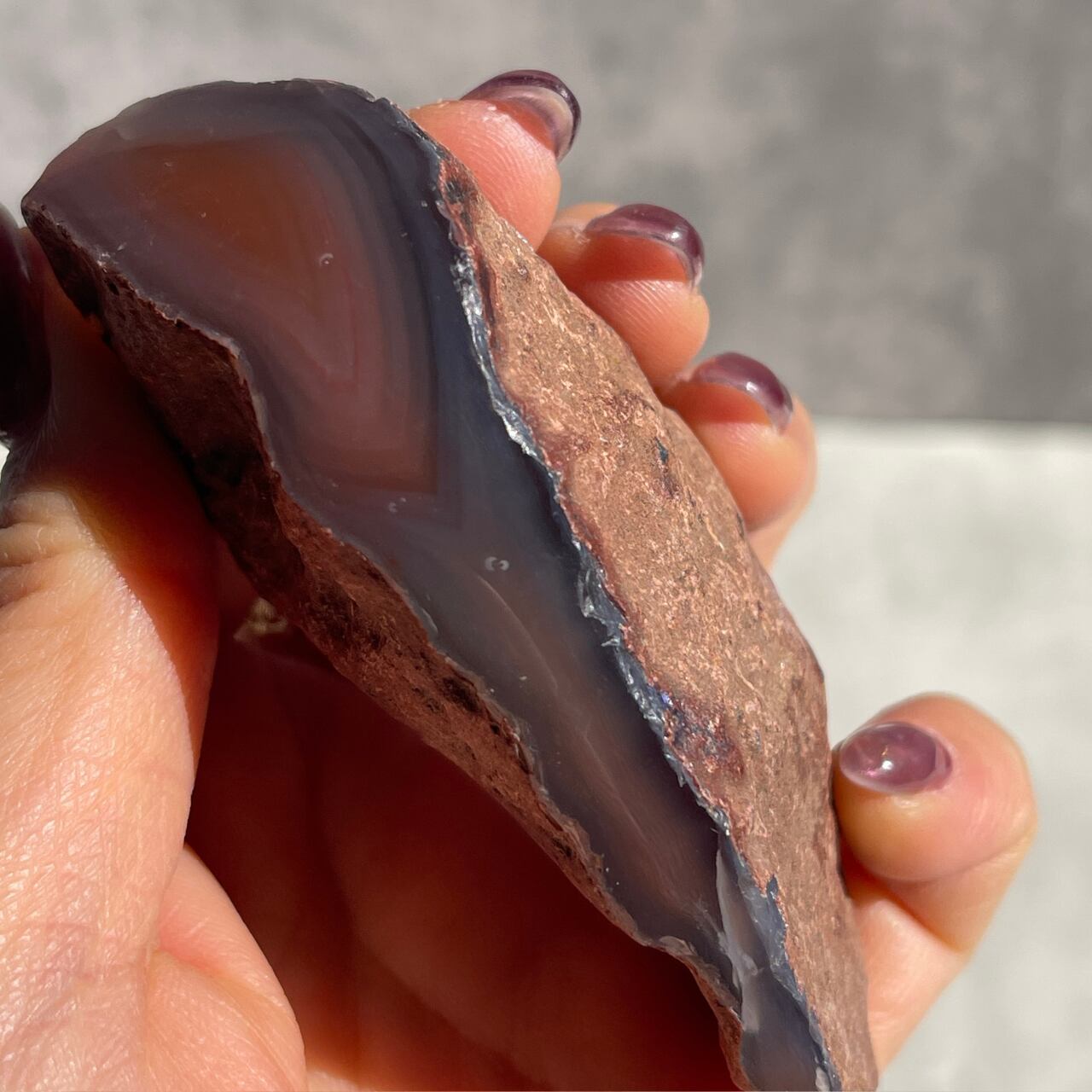 アゲート特有の縞模様と色合いが美しく、光にかざすと半透明の質感を見ることができます。
