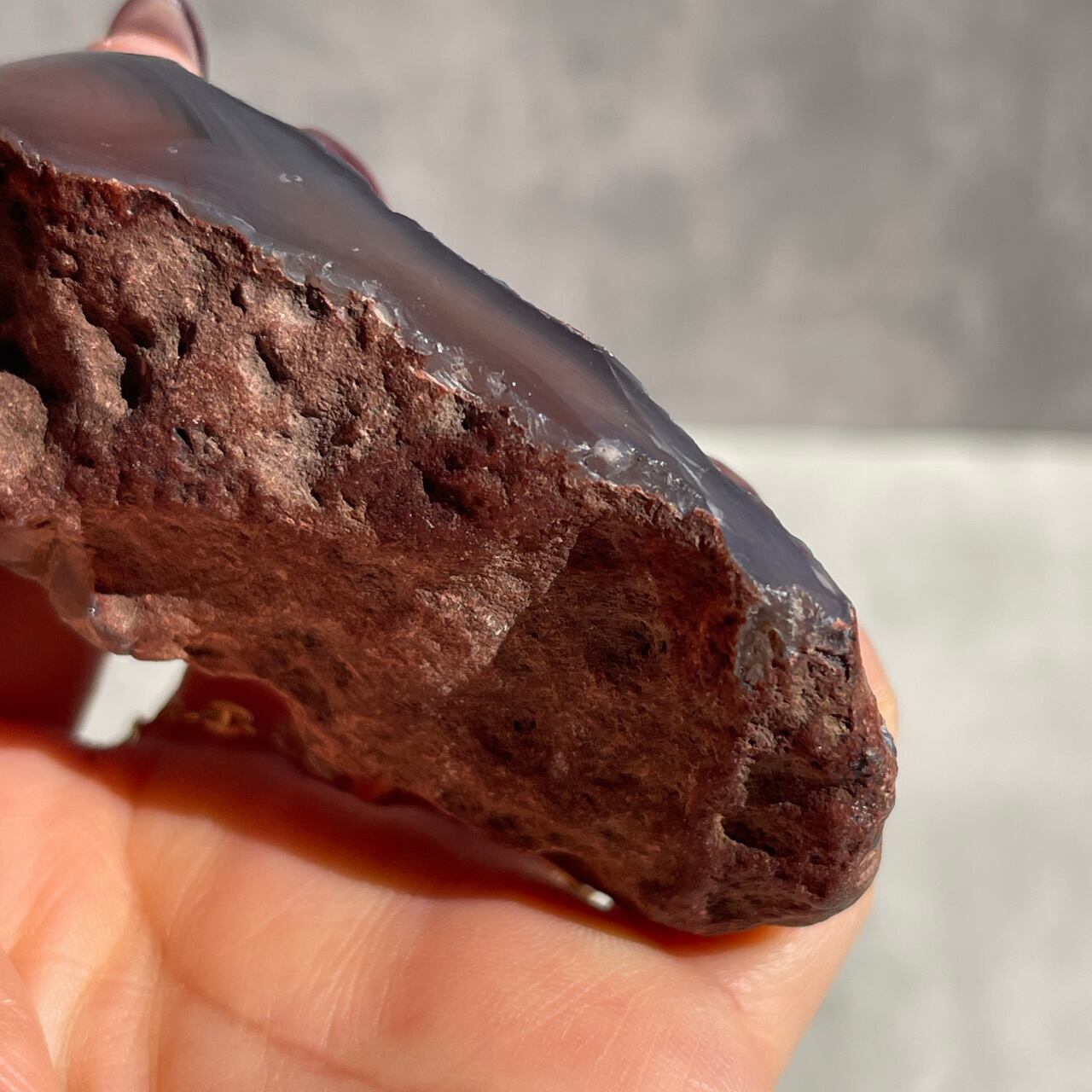 アゲートの中でも赤みの色合いを強く発する、ジンバブエ産レッド・シャシェ・リバー・アゲート・ノジュール。