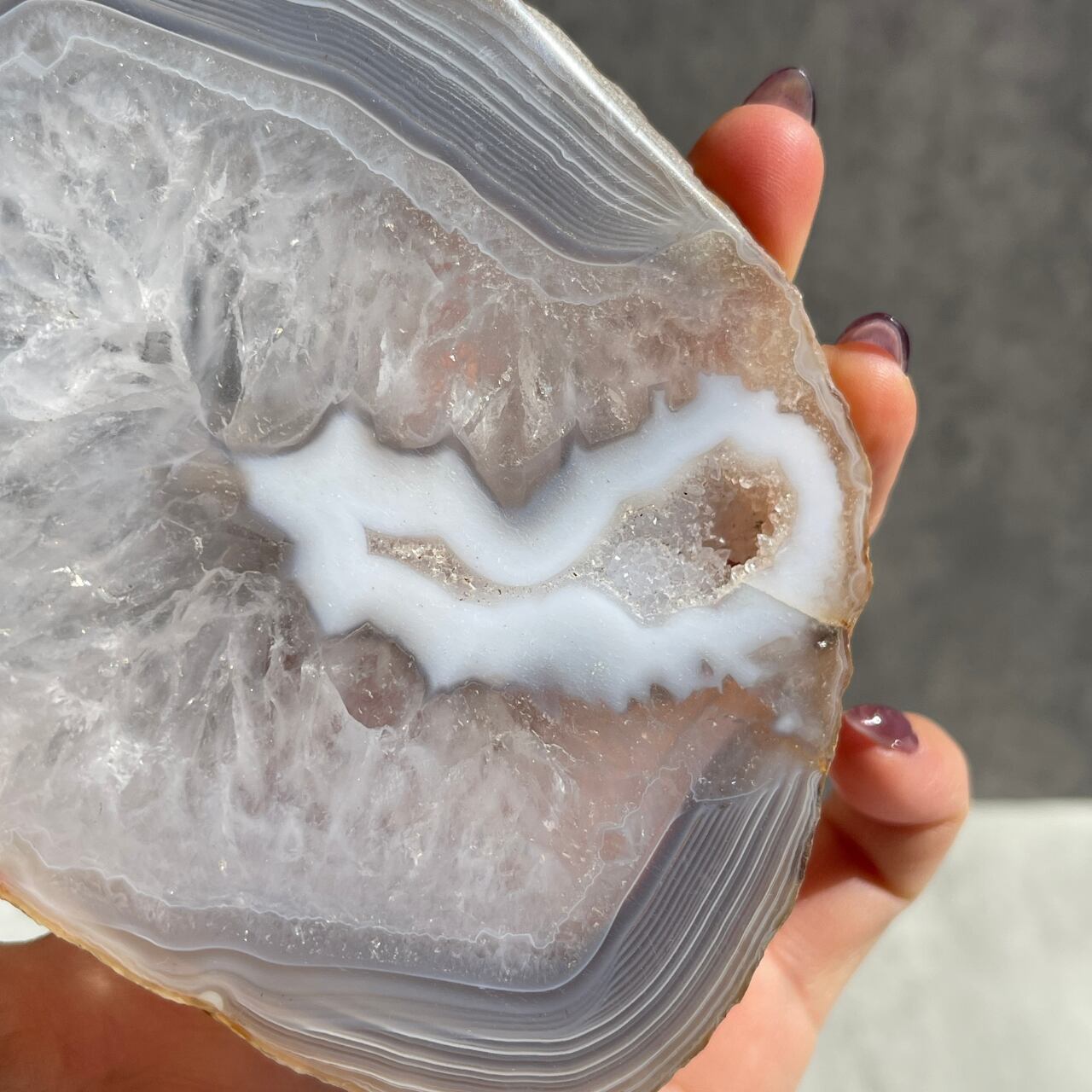 層一つ一つがとても薄く、濃淡グレーのグラデーションから白色などが混ざり合った、美しい子。