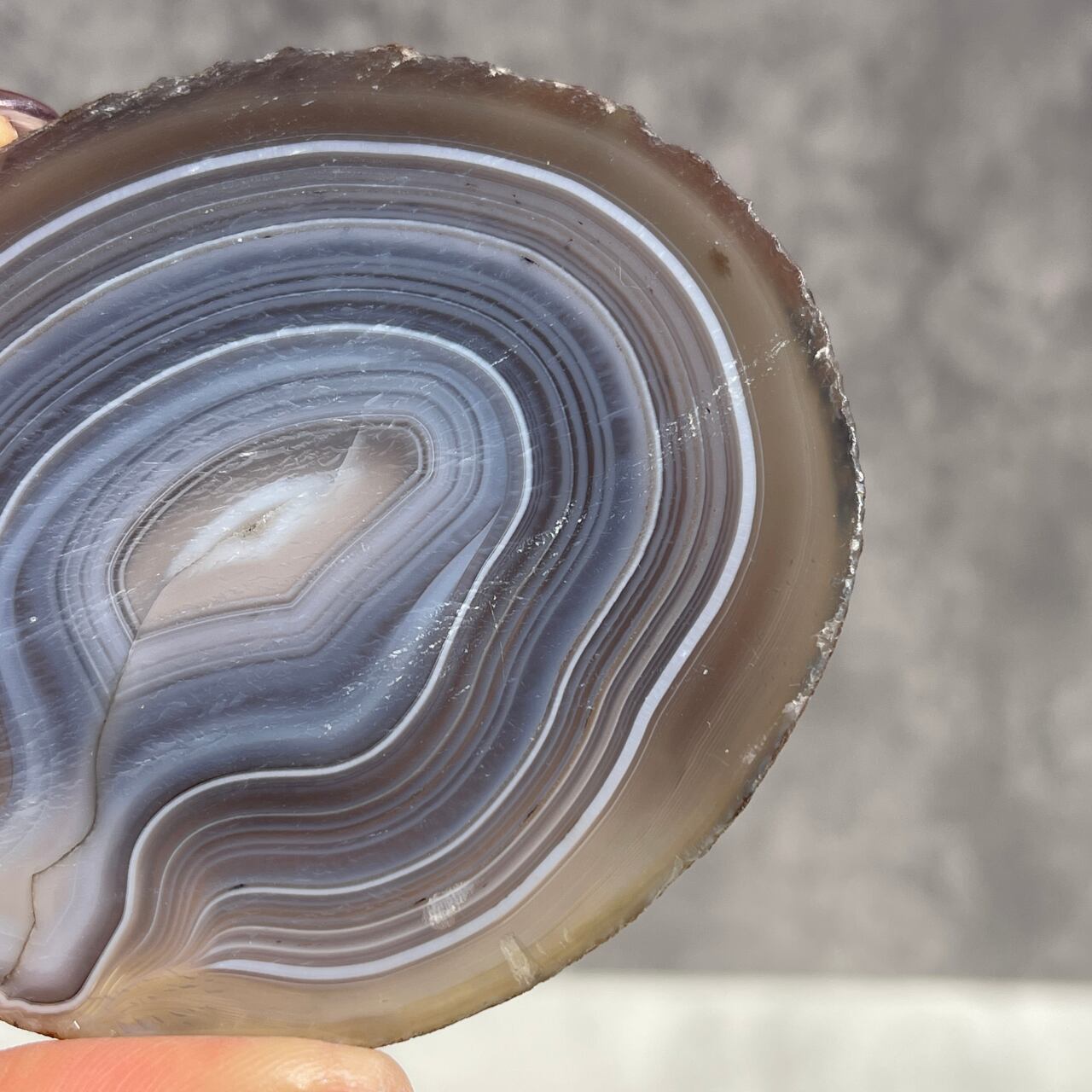 複数のカラーが重なりあった繊細な縞模様が魅力の、マダガスカル産バンデッドアゲートスライス。