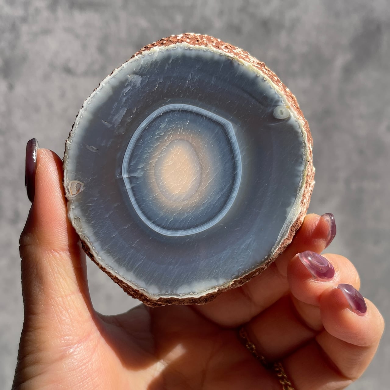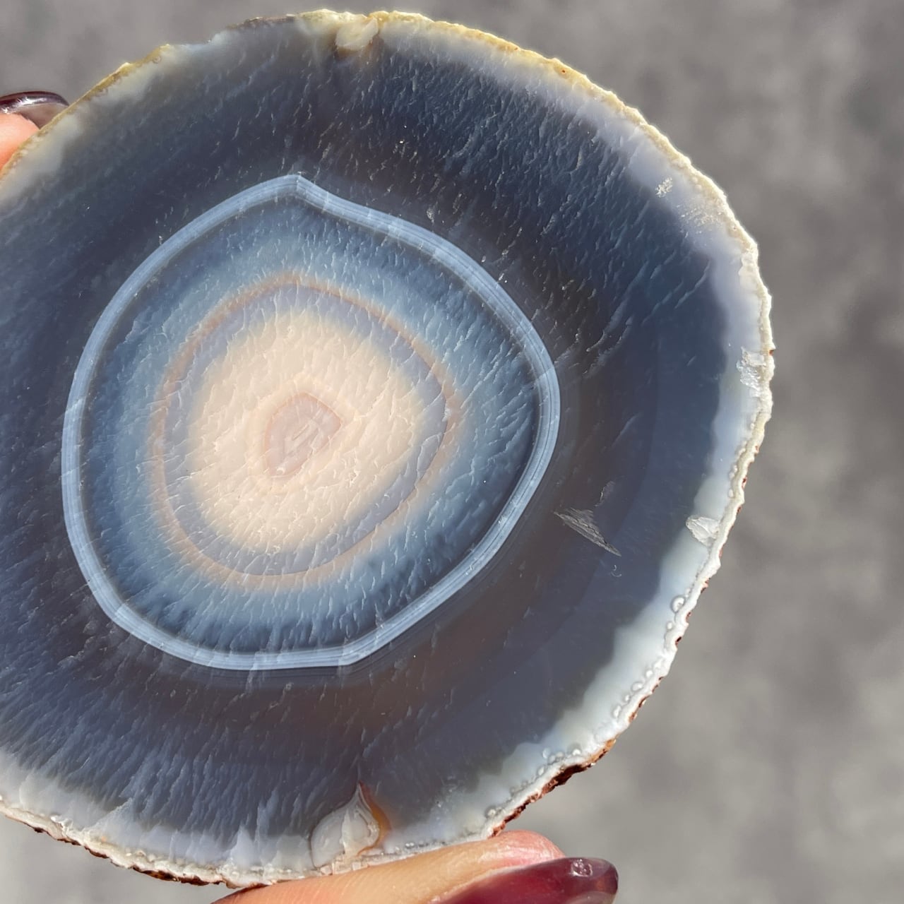 複数のカラーが重なりあった繊細な縞模様が魅力の、マダガスカル産バンデッドアゲートスライス。