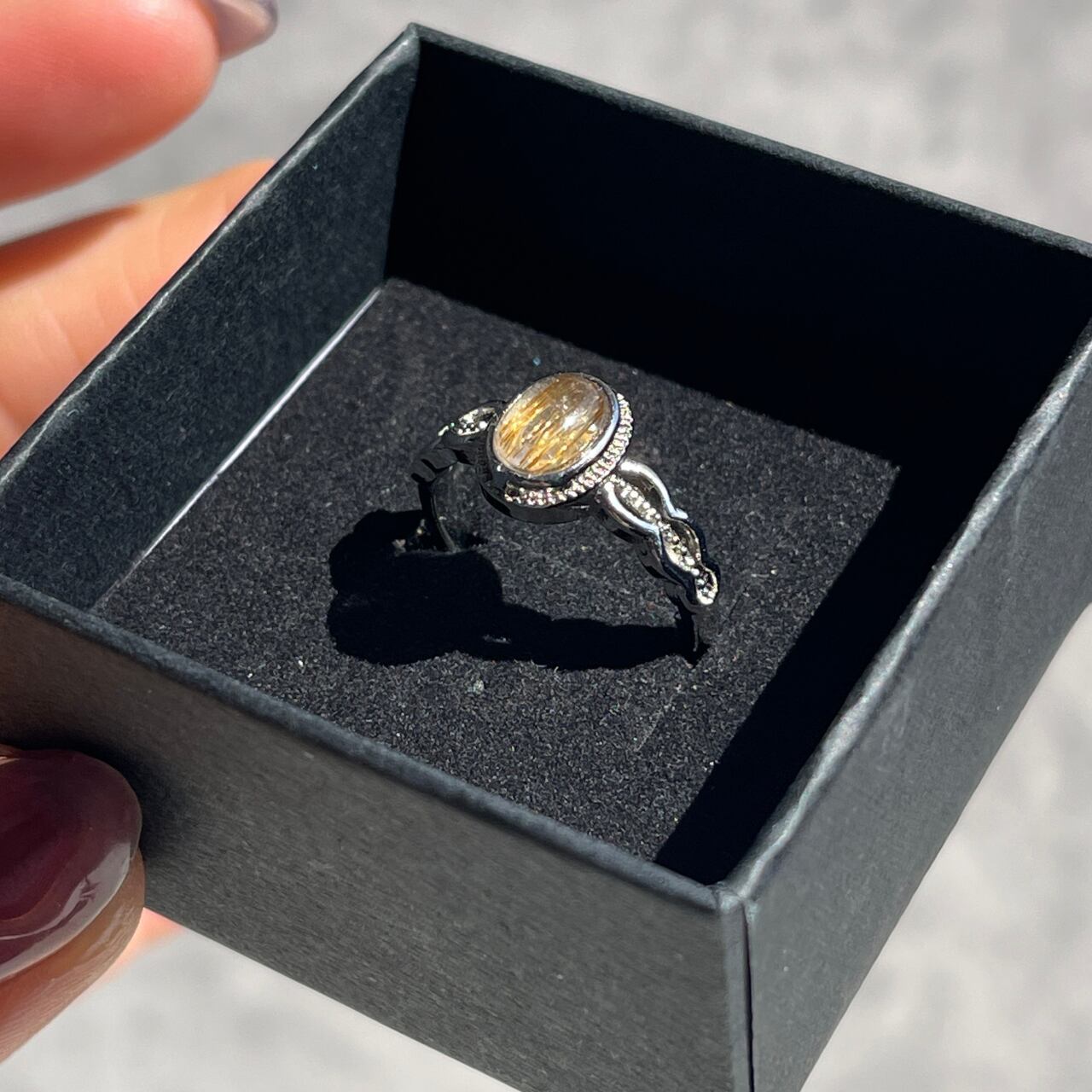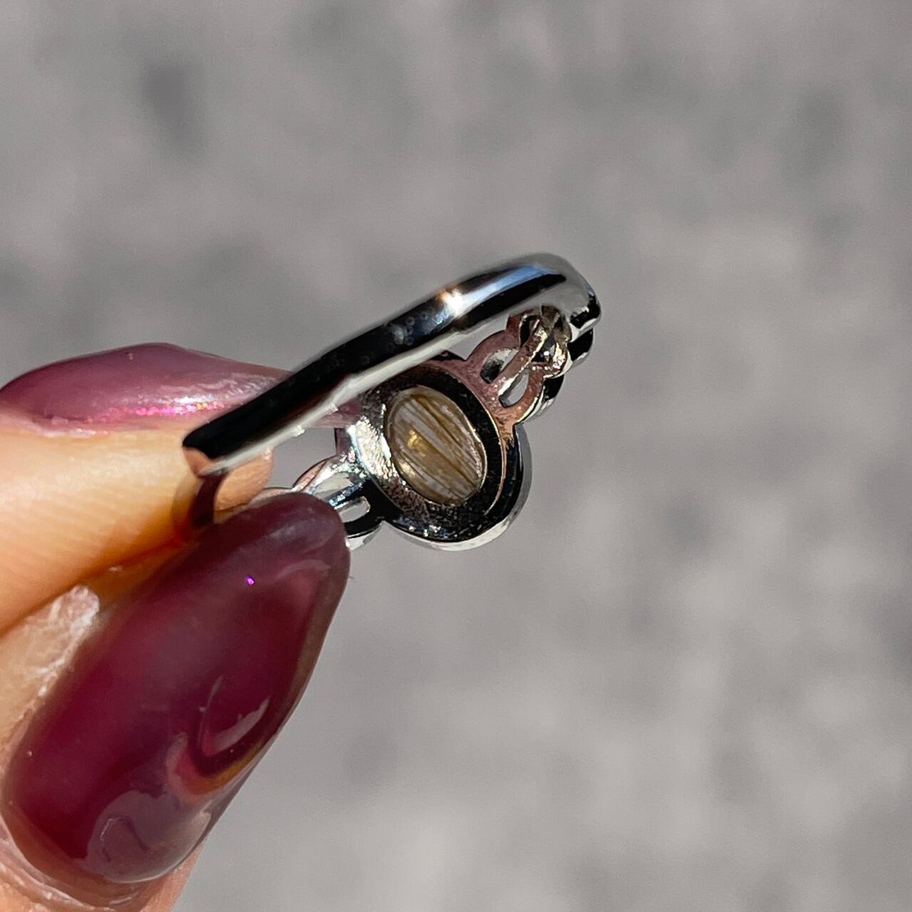 水晶の中に赤茶色~茶褐色の針状の内包物が見られる、ブラウンルチルクォーツのリング。