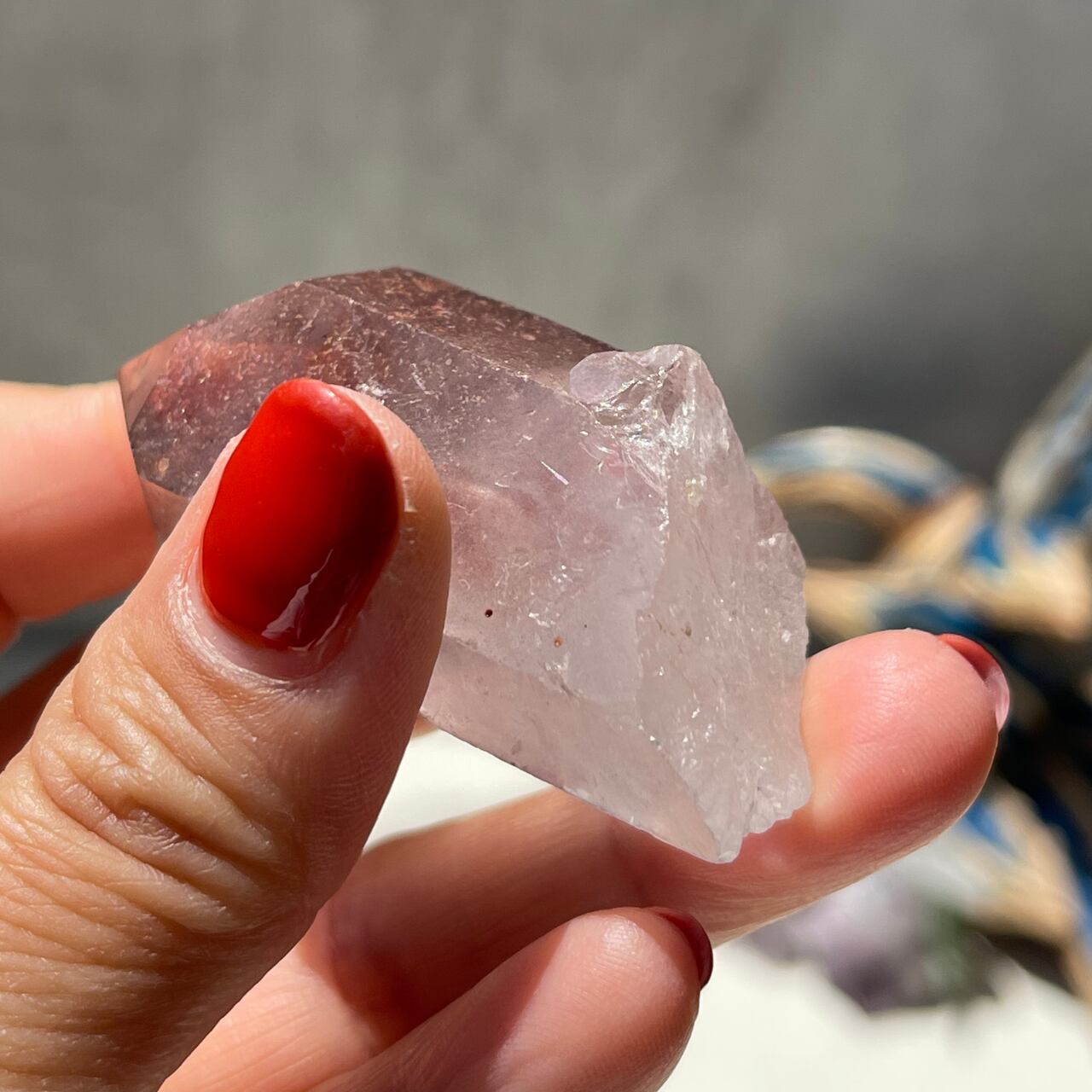 透明な水晶の中にヘマタイトを内包した、ブラジル産ヘマタイトインクォーツ。