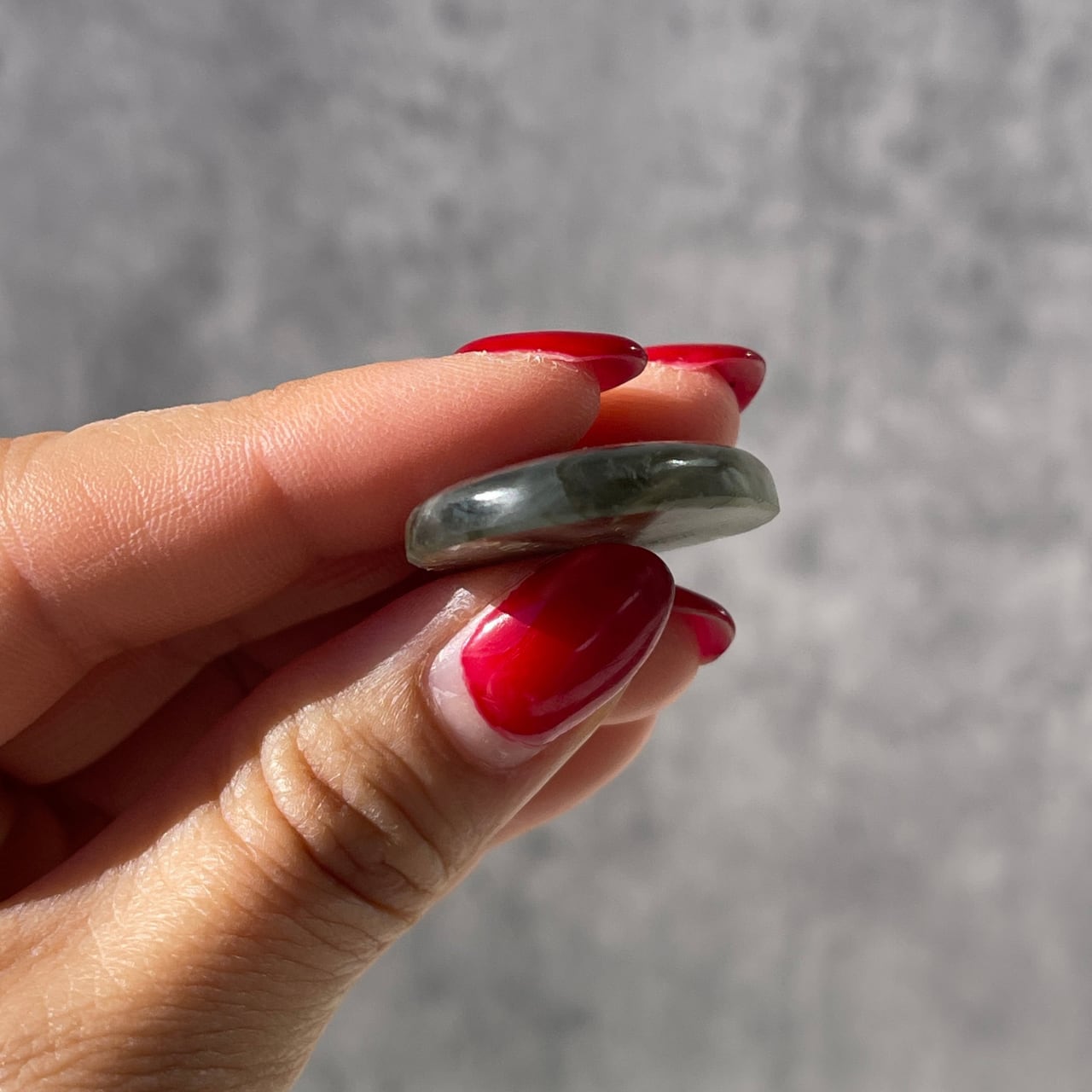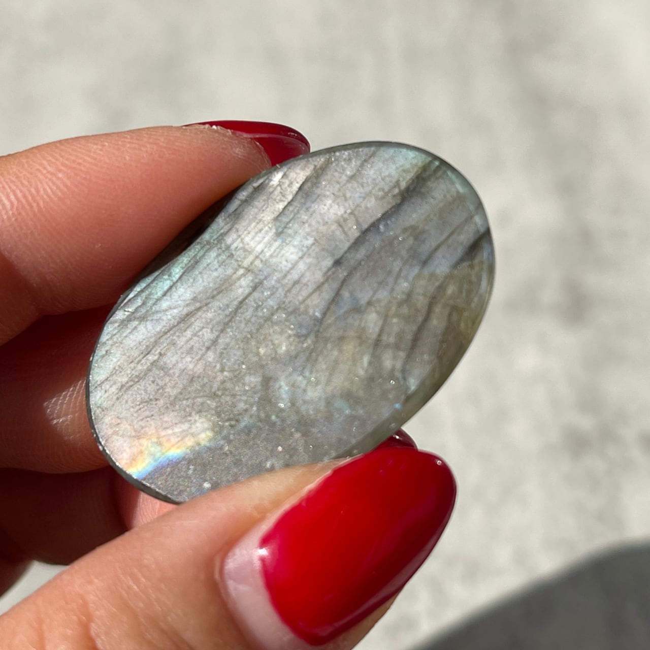 グレーの石の表面にぼんやりと浮かぶさまざまな色の光は、まるで雨上がりの空に浮かぶ虹のように美しく、不思議な魅力があります。
