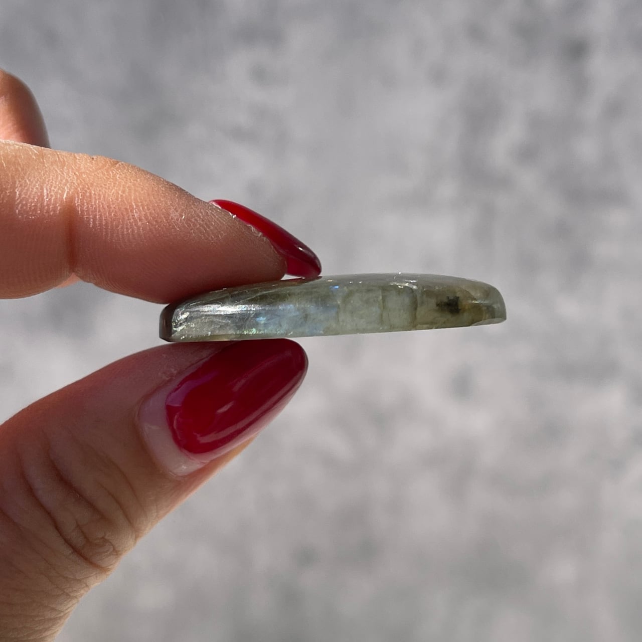 幻想的なブルーシラーが見られる、ラブラドライトのカボション。