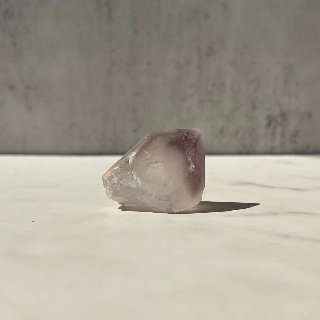 磨りガラスのような半透明の紫色のグラデーションの中に山型のファントム層を持つ、マダガスカル産ファントムアメジスト。