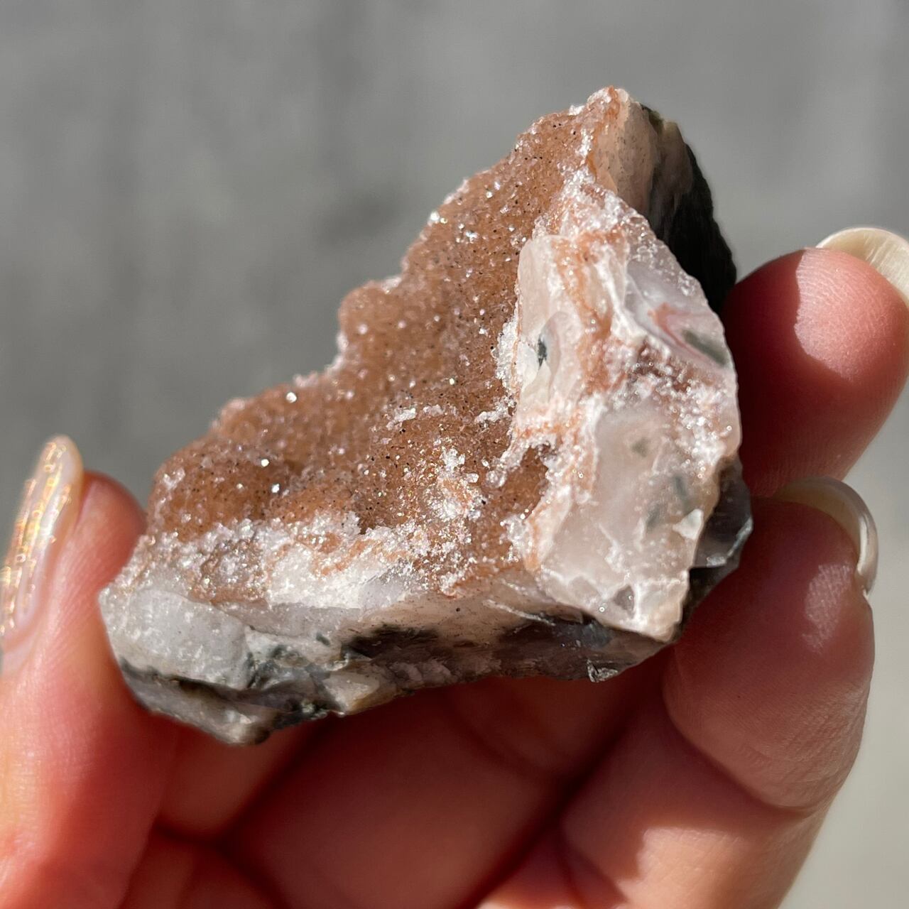 アメジストと聞くと紫色を連想しますが、このアメジストは赤みを強く発色しています。